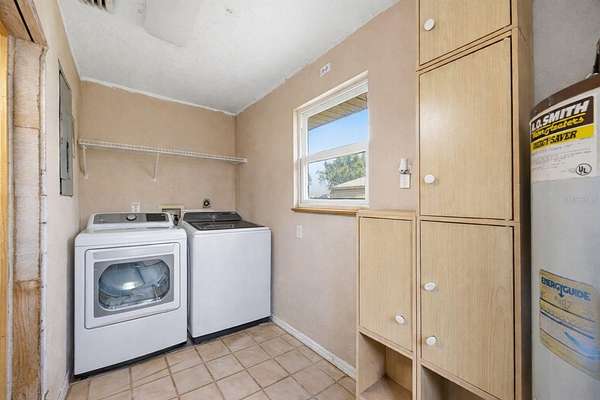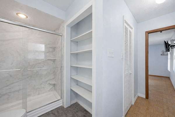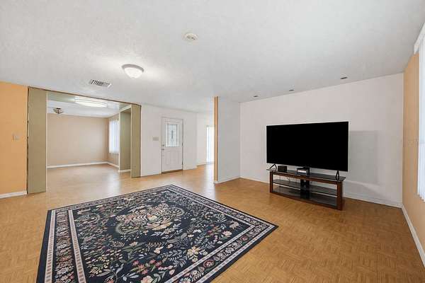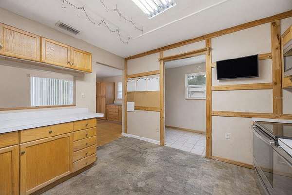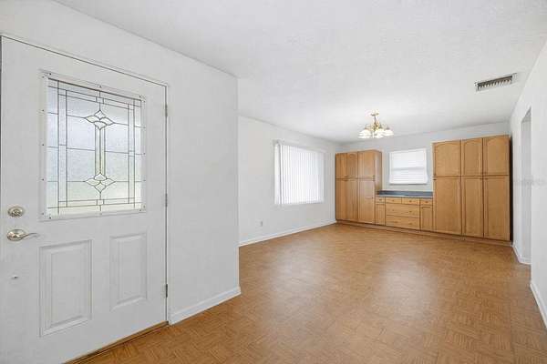 Inside, the home features a spacious layout with oversized living areas, and great natural light. The kitchen offers solid wood cabinetry, stainless steel refrigerator, and ample counter space with a functional layout ready for updates or customization. The bathroom has been updated with a modern walk-in glass shower and tile surround. This property also features a brand new AC (December 2025).