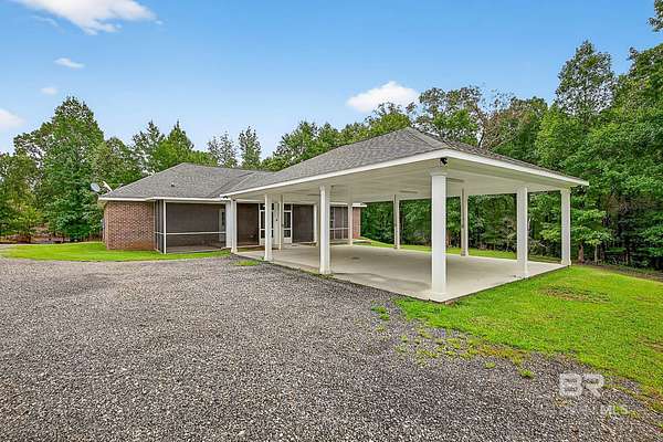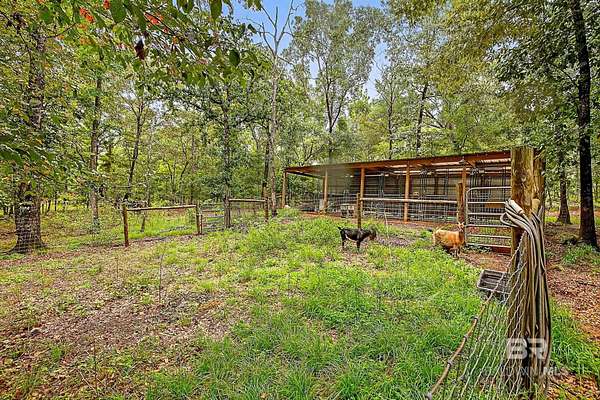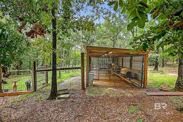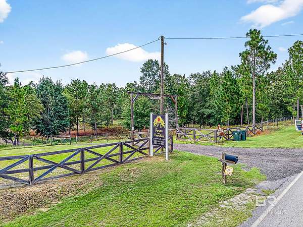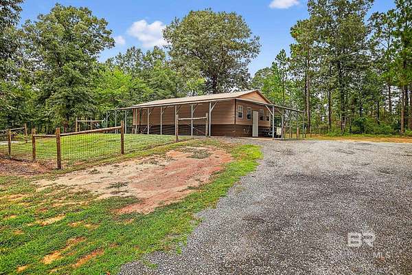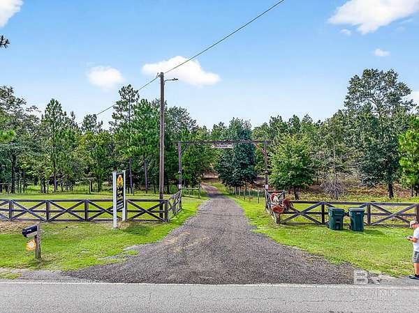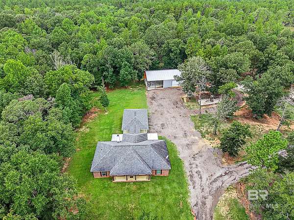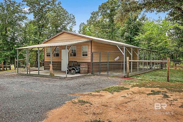 Welcome to this stunning and unique property located in the peaceful Lottie area of Baldwin County. Nestled on 17.5 beautiful wooded acres--approximately 8 of which are fully fenced--this well-maintained home, built in 2017, offers a perfect blend of comfort, space, and opportunity. A newly laid gravel rock driveway leads you all the way from the road to the home and both large metal shops, offering easy access and a clean, polished approach to the property. Inside, the home features tall ceilings and a spacious open-concept design that's ideal for entertaining. The kitchen is complete with granite countertops and stainless steel appliances, all of which convey with the sale. The master suite offers ample natural light and a beautifully designed bathroom with two walk-in closets, double vanities, a tiled shower, and a separate garden tub--making it a true retreat. This property was previously used as a fully functioning dog breeding facility and is equipped with everything you need to bring it back to life or repurpose it to suit your needs. Two massive metal shops provide endless potential. The primary 60'x40' shop features a closed-cell spray foam insulated man cave area, with 20'x30' of it fully enclosed, air-conditioned, and outfitted with a full kitchen, game cleaning area, washer and dryer, and 200 amp electrical service. Attached to the home is a huge 36'x36' carport that leads directly into a 25'x10' screened-in porch--which is equipped with 200 amp service, making the porch ideal for a jacuzzi or outdoor living space. A separate water well services all of the shops, the fenced pasture, and several concrete slabs that once supported kennels, offering excellent utility access for livestock, business operations, or other uses. Whether you're seeking peaceful country living, a turnkey business opportunity, or a bit of both, this versatile and beautifully maintained property is ready for its next chapter. Schedule your private showing today to experience all it! Buy