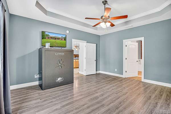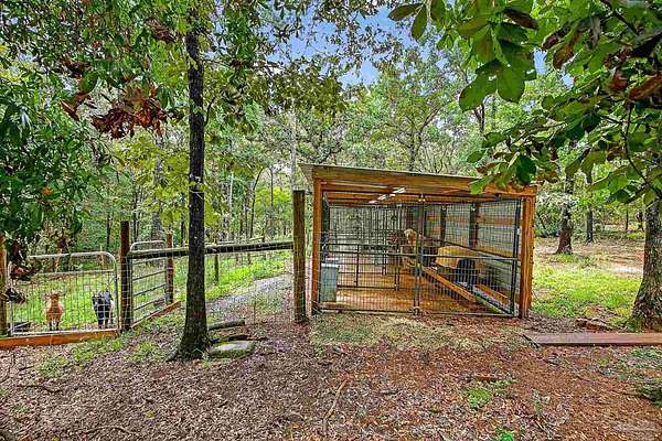 Welcome to this stunning and unique property located in the peaceful Lottie area of Baldwin County. Nestled on 17.5 beautiful wooded acres-approximately 8 of which are fully fenced-this well-maintained home, built in 2017, offers a perfect blend of comfort, space, and opportunity. A newly laid gravel rock driveway leads you all the way from the road to the home and both large metal shops, offering easy access and a clean, polished approach to the property. Inside, the home features tall ceilings and a spacious open-concept design that's ideal for entertaining. The kitchen is complete with granite countertops and stainless steel appliances, all of which convey with the sale. The master suite offers ample natural light and a beautifully designed bathroom with two walk-in closets, double vanities, a tiled shower, and a separate garden tub-making it a true retreat. This property was previously used as a fully functioning dog breeding facility and is equipped with everything you need to bring it back to life or repurpose it to suit your needs. Two massive metal shops provide endless potential. The primary 60'x40' shop features a closed-cell spray foam insulated man cave area, with 20'x30' of it fully enclosed, air-conditioned, and outfitted with a full kitchen, game cleaning area, washer and dryer, and 200 amp electrical service. Attached to the home is a huge 36'x36' carport that leads directly into a 25'x10' screened-in porch-which is equipped with 200 amp service, making the porch ideal for a jacuzzi or outdoor living space. A separate water well services all of the shops, the fenced pasture, and several concrete slabs that once supported kennels, offering excellent utility access for livestock, business operations, or other uses. Whether you're seeking peaceful country living, a turnkey business opportunity, or a bit of both, this versatile and beautifully maintained property is ready for its next chapter. Schedule your private showing today to experience all it!