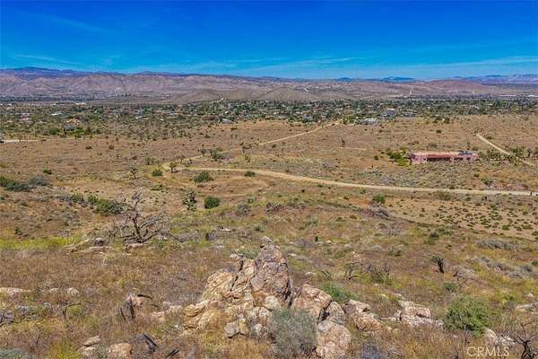 The terrain provides multiple potential build sites, whether you’re envisioning a primary residence, desert retreat, or investment hold. Expansive views of the surrounding hills and valley floor create a strong sense of place, with Joshua trees, rock outcroppings, and natural desert landscaping throughout.