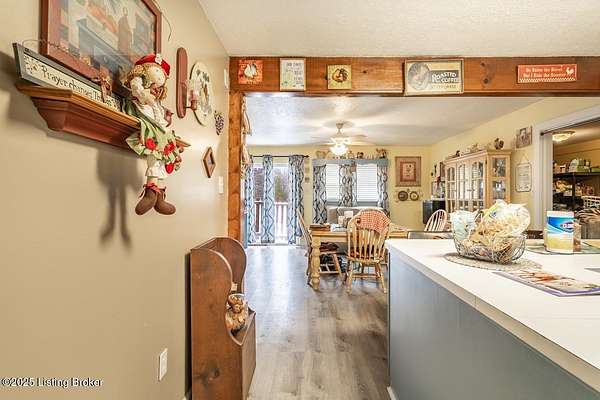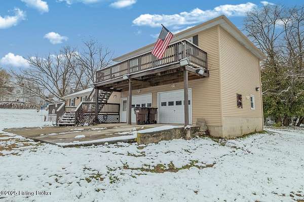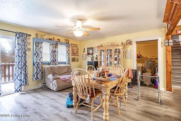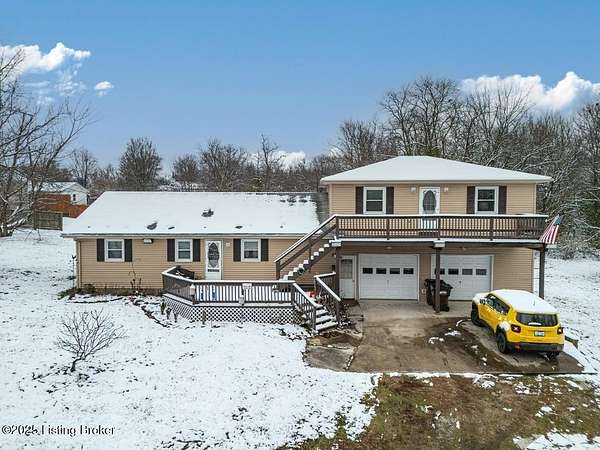 Rare opportunity! This spacious 3 bedroom, 2 bath home situated on nearly 5 acres of land is a rare find! You will be located in the heart of Eminence allowing you to be close to everything you need while living off of the main road on a spacious wooded lot. When you enter the home you will find a living area/dining area that is open to the kitchen creating the perfect space to entertain guests. In the kitchen you will find ample cabinet space for storage as well as a peninsula that allows for additional seating and lots of counter space. There are 2 bedrooms and a full bath on the main floor along with a spacious laundry room. Upstairs you will have a family room and a third bedroom with a spacious walk-in closet and a full bathroom. You will have plenty of room for secured parking in the oversized 2 car garage equipped with shelving for easy organization. Make sure you get a chance to see this home while it is still available - schedule a showing today!