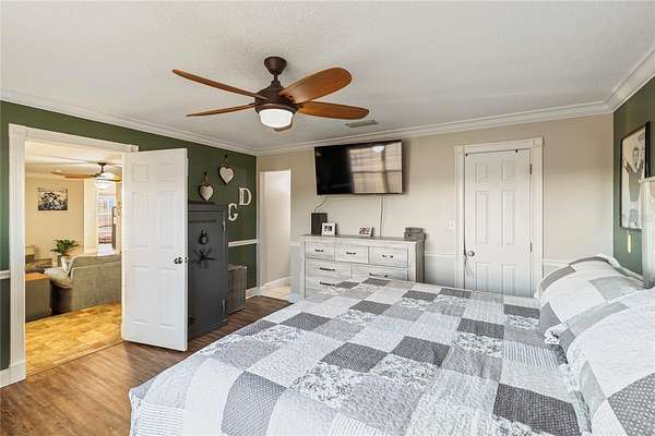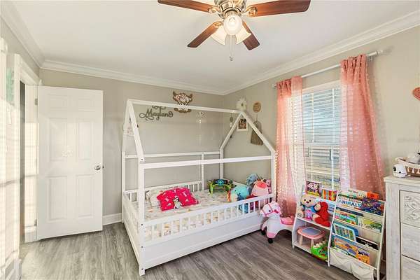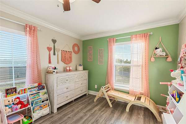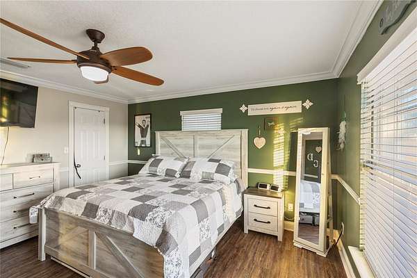 - Ceiling Fans(s), Crown Molding, Split Bedroom, Walk-In Closet(s), Window Treatments