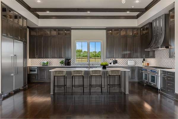 - Built-In Wine Cooler, Cable TV Available, Chandelier, Decorative Lighting, Double Vanity, Dry Bar, Eat-In Kitchen, Flat Screen Wiring, Granite Counters, High Speed Internet Available, In-Law Suite Floorplan, Natural Woodwork, Open Floorplan, Sound System Wiring, Vaulted Ceiling(s), Walk-In Closet(s)