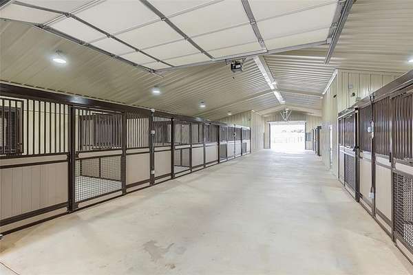 - Fence, Lighting, Outdoor Living Center, Private Entrance, Rain Gutters, Stable/Barn