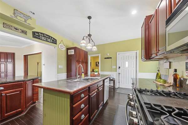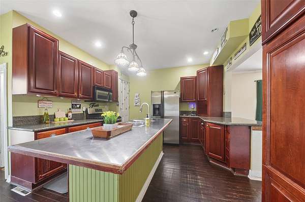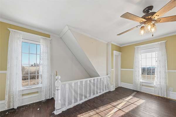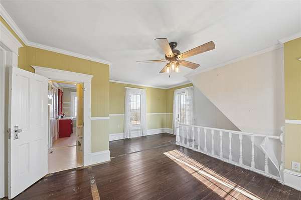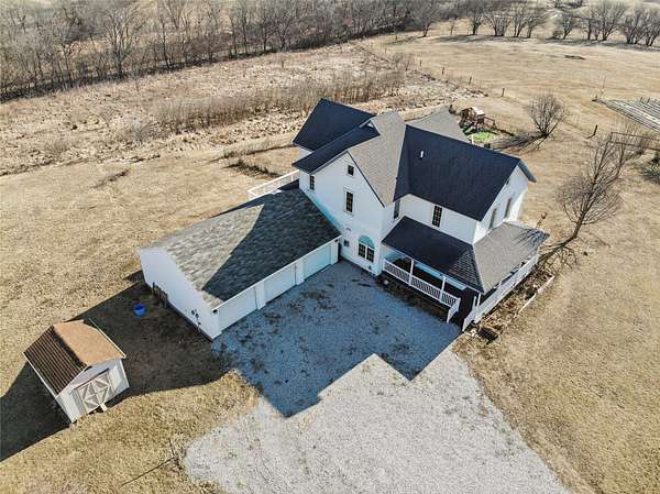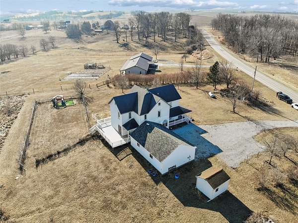 A Rare acreage opportunity offering flexibility, space & exceptional value without the gravel roads. This expansive 2 story farmhouse home sits on over 3 acres of paved access land & showcases stunning views of rolling hills, just minutes from Carlise. Featuring 7 bedrooms & 4 baths (2 full, 2 partial) is thoughtfully designed for versatility. From the covered front porch to the front door, you can feel the release from your day unwind.Stained Glass windows, stained glass lights, ornate trim work take you back to a simpler time. Large rooms showcase hardwood floors throughout the main floor & the spacious upstairs bedrooms featuring 2 private ensuites. The kitchen has newer kitchen appliances & many cabinets. The staircase to the upstairs bedrooms & lower level are both accessible from the kitchen for easy access. The finished lower level has its own private exterior entrance, ideal for multigenerational living, extended guest, private suite use or income producing use. 3 bedrooms, 3/4 bath, 2 laundry facilities and a kitchenette. The home is currently utilized as an AirBnB providing residual income. Step outside to the spacious deck that spans the backside of the home to enjoy for spring, summer evenings or mornings. Thinking about raising chickens? This property comes complete with a chicken coop and storage shed. With space to roam & multiple living options this property offers privacy & seclusion. Property also includes a 3 car garage. Schedule your appt today!