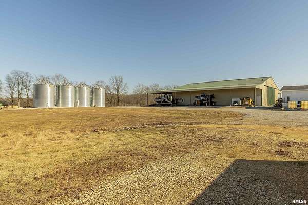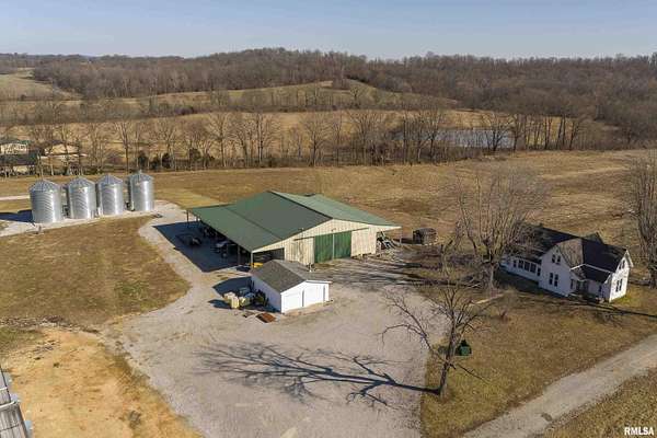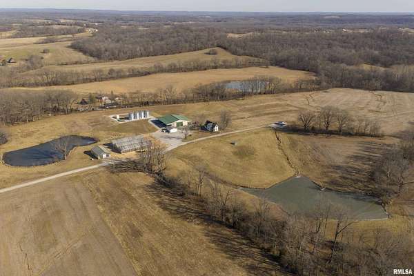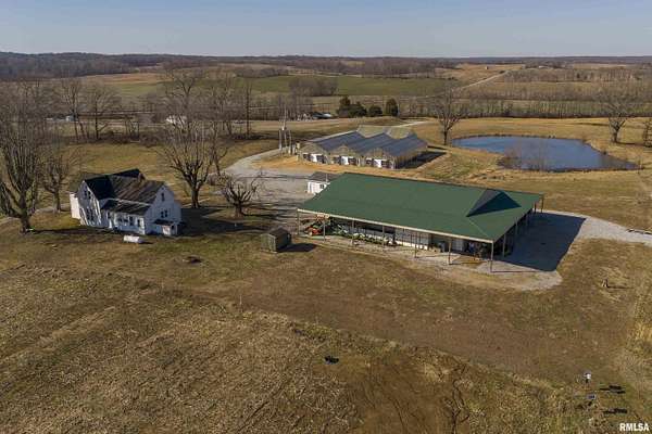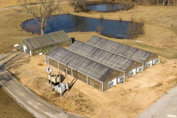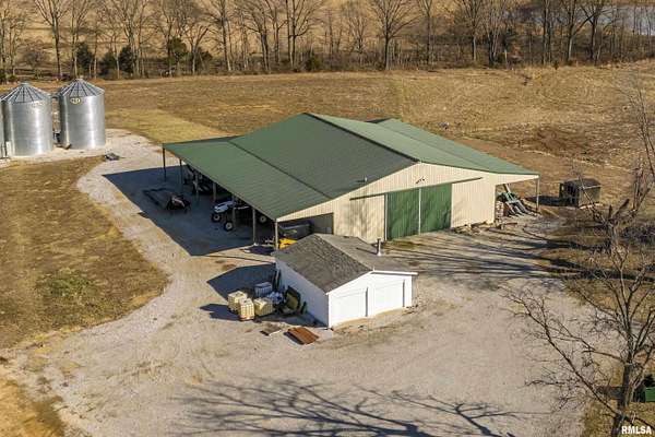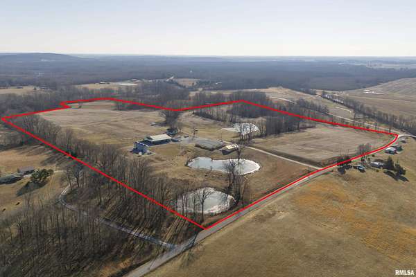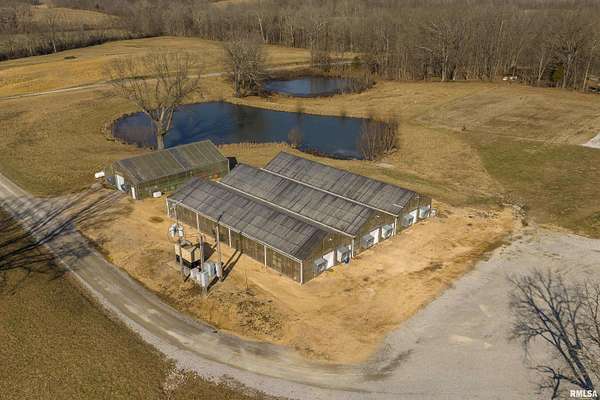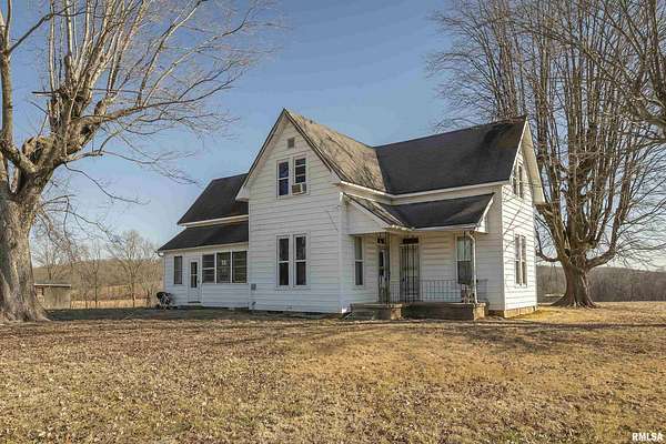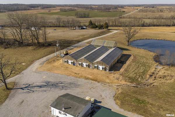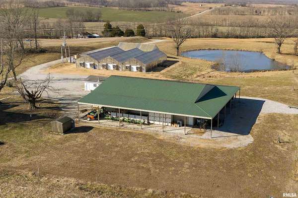 Ready to change your lifestyle? This is an entrepreneur's opportunity! Live in the 4-bedroom farmhouse with beautiful hardwood floors throughout while establishing your own niche in Southern Illinois. There are 74 acres of land: tillable, pasture, and wooded. Eight to ten acres of the tillable ground is irrigated. Irrigation is provided by the ponds...there are three of them...as well as the deep well that pumps 120 gallons a minute. There are four greenhouses, three of them are 30x90 each, that can be opened up to each other or can be separated with curtains, depending on your needs and the climate preferred in each area. The fourth greenhouse is freestanding. All greenhouses can be monitored and controlled from afar and have a back-up generator! There are 4 grain bins on site. Let's talk about this pole barn! The pole barn was built with utility and durability in mind. The enclosed space measures 60x80x16. It has a concrete floor and a loft for extra storage. Outside, there is a lean-to measuring 98x18.6 down each side and on the back. This is over 10,000 square feet of space! The possibilities for this farm are limited only by your imagination! This is your chance to live, play and earn a living doing what you love to do! We have used AI staging in this home to show you the possibilities!