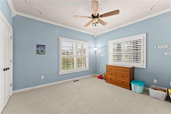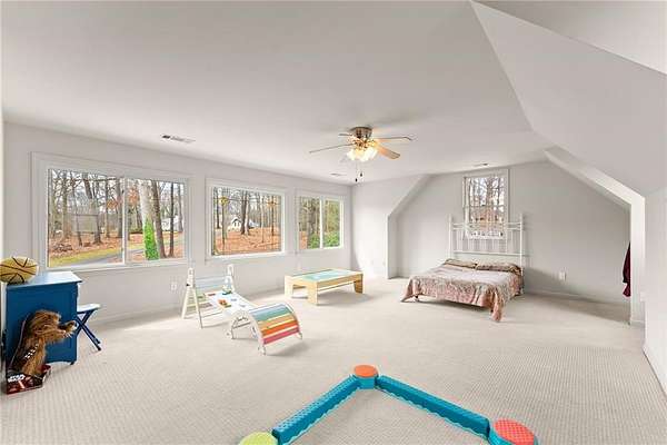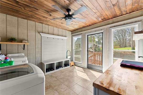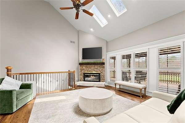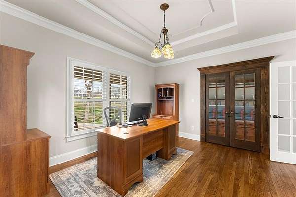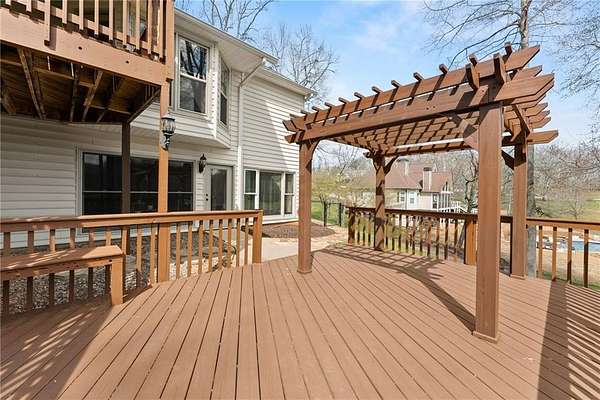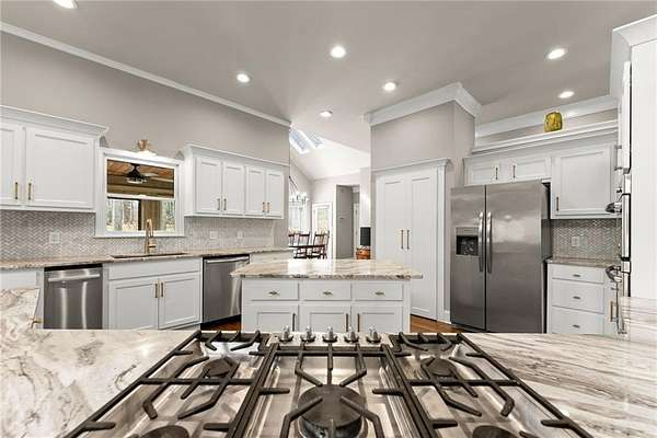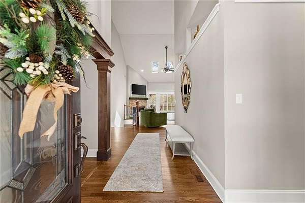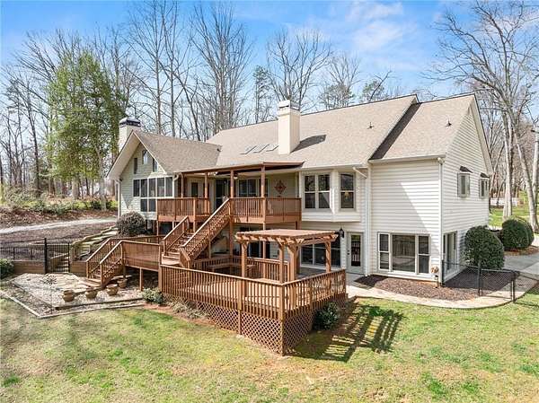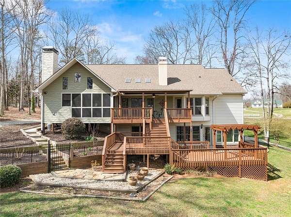 Tucked away on more than 3 private acres in the sought-after North Hall and Wauka Mountain school district, this property offers the kind of space, privacy, and freedom that is becoming harder to find. With no HOA, a fenced pasture, and a river along the back of the property, the setting is ideal for a hobby farm, outdoor living, or simply enjoying a quieter pace of life. Inside, thoughtful updates pair with a layout designed for everyday living and gathering with others. The renovated kitchen anchors the main living areas and flows easily into both formal and casual dining spaces, making it ideal for hosting family and friends. The dining room is accented with stained glass windows that add character and warmth to the space. The laundry room was recently relocated and expanded to include a sink and counter space for added functionality, while also creating the opportunity for an optional butler's pantry. Fresh interior paint, plantation shutters, newly finished oak hardwood floors, and new carpet in the bedrooms give the home a clean, move-in-ready feel. The oversized primary suite on the main level features a beautifully updated bathroom, while a dedicated office makes working from home easy. A sunroom with cathedral wood ceilings and fireplace creates a bright year-round retreat. With five bedrooms, a finished basement with driveway access, a bonus room over the garage, and two hidden heated and cooled attic rooms, the home offers exceptional flexibility for guests, hobbies, or multi-generational living. Outside, the property truly shines. Expansive decking, including a newly covered section, overlooks the children's play area, pond, fenced pasture, and the river that borders the back of the property. It is the kind of setting where mornings start with coffee outside and evenings end watching the sun go down over the land. Practical features add everyday convenience and peace of mind, including a whole-home generator, storm shelter, circular driveway, three garages with two on the main level and one in the basement, and gravel access around the home and pasture for easy property maintenance. Properties offering this much space, privacy, and versatility in North Hall rarely come available.