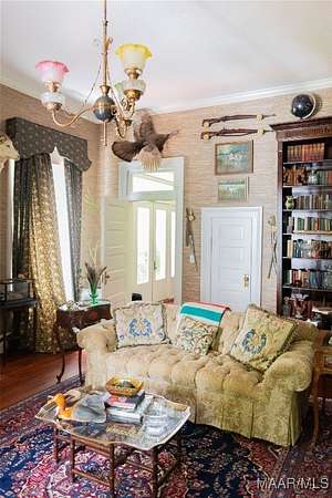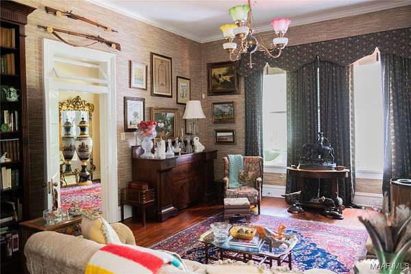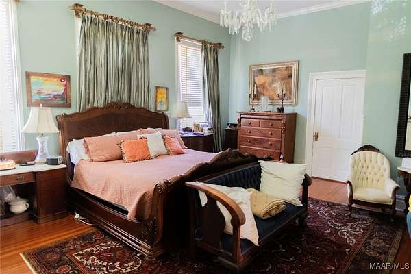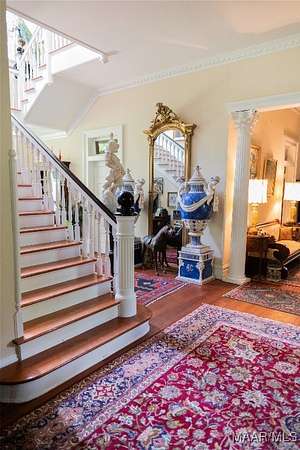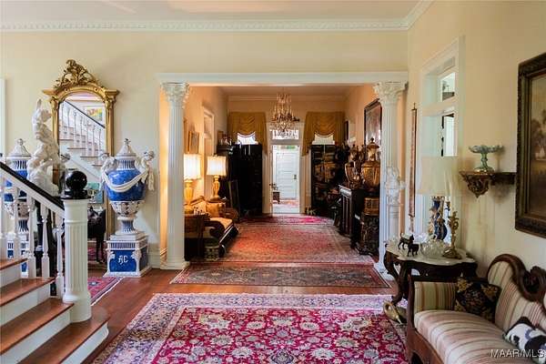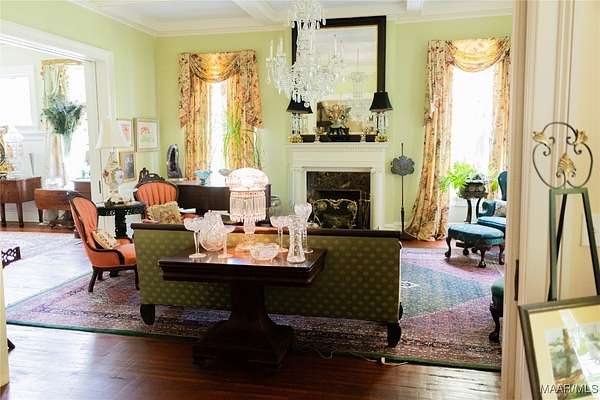 This Classical Revival was built in 1913 and is situated on 13 acres in Sardis, AL; commonly known as the J. Bruce Hain house, and now the Hain-Harrelson house. The front exterior has a two-story Corinthian portico and a full-width second floor balcony. The grounds include a below ground brick greenhouse, detached workshop, a modern garage, courtyard, brick printed walkway throughout the yard and a beautifully landscaped 5+/-acre yard that includes a sprinkler system. The interior features a central hall floor plan bisected by a side hall. The center hall is 12 ft wide by 54 feet long. The house features 12 ft ceilings, heart pine floors, 9-inch baseboards, plaster walls, and some pocket doors. The downstairs includes a large parlor, formal dining, library room, large bedroom and bath, breakfast room/keeping room, large kitchen, back entry family room area, half bath, large staircase leading to the upstairs and a smaller back staircase that also leads to the upstairs. The upstairs includes 4 bedrooms (one the main suite and bath), 2 bathrooms, sunroom, large family room and a large balcony overlooking the front yard. Own a piece of history! Call for more information and a viewing of this wonderful property!