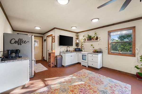 Welcome to this beautifully unique 2-bedroom, 2.5-bath barndomium that offers space, comfort, and versatility -- just minutes from the lake! Perfectly suited for those who love a blend of rustic charm and modern amenities, this property has it all. Inside, you'll find rich pine floors throughout and a welcoming gas and wood-burning fireplace as the centerpiece of the living room. An elegant winding staircase leads to a loft-style upstairs bedroom and full bath, overlooking the living area -- ideal for guests, teens, or a private retreat. The primary suite boasts his and hers walk-in closets and a spacious en-suite bath. Each bedroom is generously sized, and all bathrooms are thoughtfully designed for comfort and functionality. Step outside to enjoy the covered front porch, perfect for relaxing year-round. Cool off in the above ground pool and take advantage of the electric gate for added privacy and security. Equestrian or hobby farm ready, the property includes a walking pen approved for FHA, a feed shack, and ample space for animals. RV owners will appreciate the RV hookup, and guests will feel right at home in the detached garage with a fully equipped mother-in-law suite with additional 442 square foot 1 bedroom, and 1 bath with adorable porch overlooking lake which offers both comfort and privacy. Whether you're looking for a full-time residence or a weekend getaway near the lake, this property is a rare find with unmatched character and functionality. It would also be a great Airbnb. Schedule your private showing today and experience all this charming property has to offer!