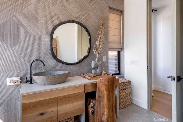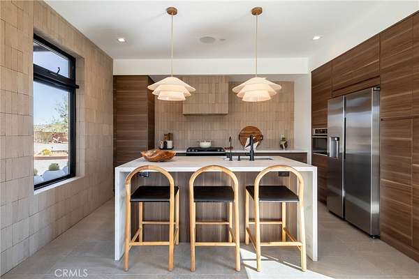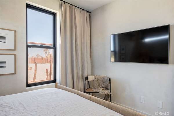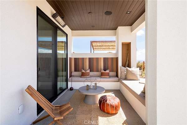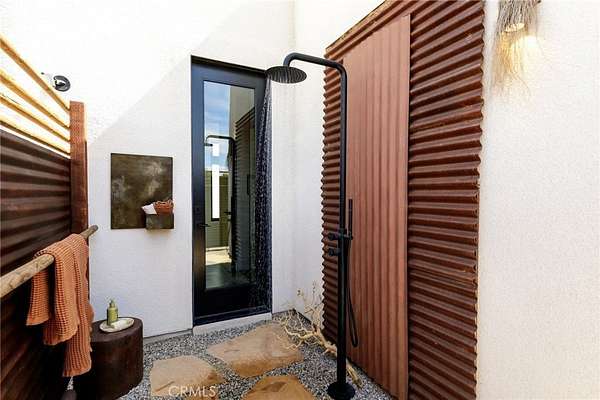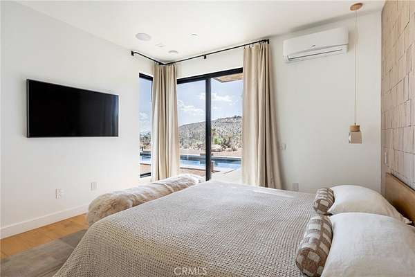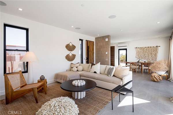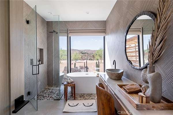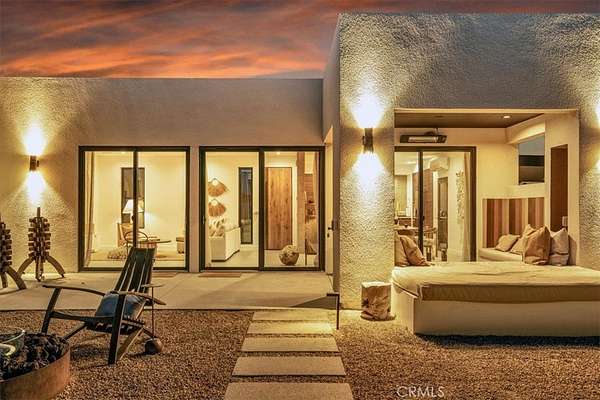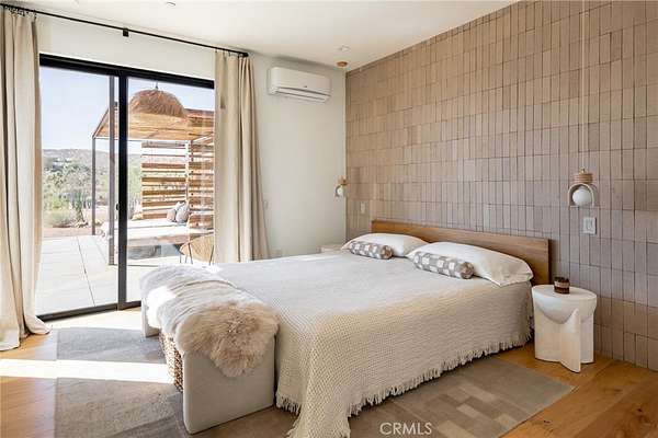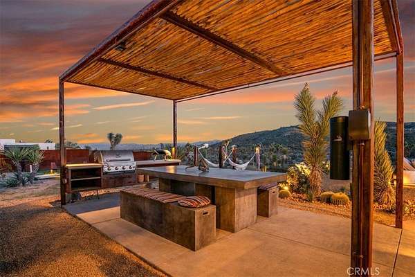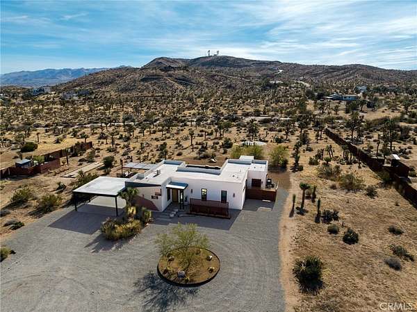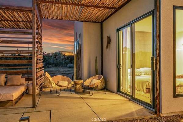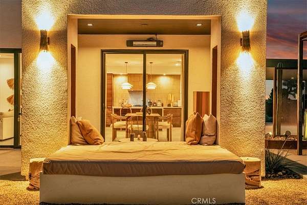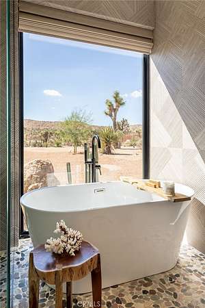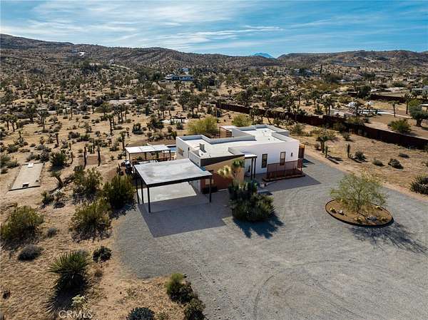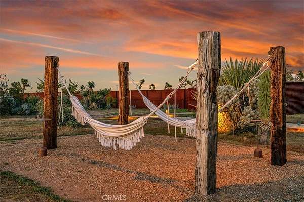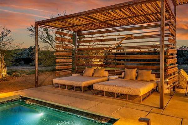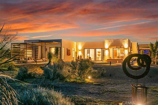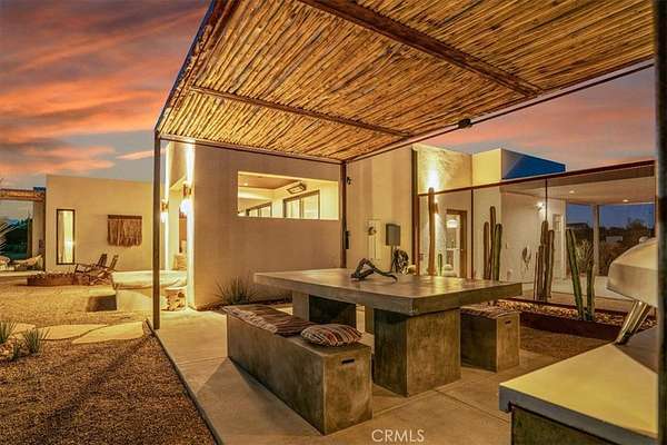 Set on 2.30 private acres in Yucca Valley, this stunning organic modern retreat blends contemporary design with the serenity of the high desert. Built in 2020, the thoughtfully designed home offers 2 bedrooms, 2 bathrooms, and 1,363 square feet of stylish living space and has proven itself as a successful vacation rental. Inside, clean architectural lines and warm modern finishes create a welcoming, design-forward atmosphere that seamlessly connects indoor and outdoor living. The outdoor spaces are designed for relaxation and entertaining, featuring a resort-style in-ground pool and spa, expansive lounge areas, and beautifully lush desert landscaping. A dedicated yoga circle offers the perfect setting for morning meditation, while a bocce ball court adds a playful element for guests and gatherings. A private entry gate enhances the sense of seclusion while still offering a convenient location just minutes from downtown Joshua Tree and Joshua Tree National Park. Whether used as a personal desert escape or continued as a high-performing short-term rental, this property delivers the ultimate blend of modern design, privacy, and resort-style outdoor living in the heart of the high desert.