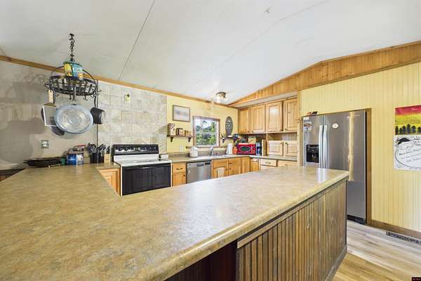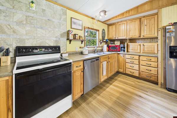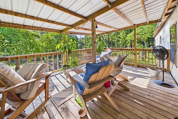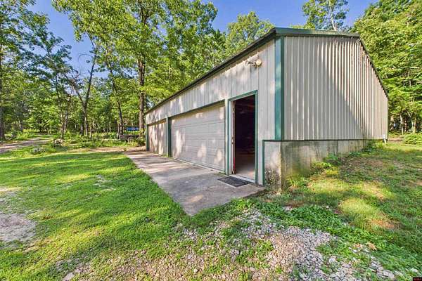 This beautifully renovated 2-bedroom, 2-bath single-wide mobile home sits on approximately 33 acres m/l of mostly wooded land just minutes from Bull Shoals Lake. The home features brand-new bathrooms with elegant walk-in tile showers, a spacious kitchen perfect for cooking and entertaining, and a large open living room with plenty of natural light. Modern updates throughout make this home move-in ready, while the fiber internet ensures fast and reliable connectivity for work or streaming. Outside, you'll find a 30x40 detached garage, along with an additional storage building for extra convenience. A backup generator provides peace of mind, and a seasonal wet-weather creek adds charm to the scenic property, which is also teeming with local wildlife. The home is served by a private well and septic system, with additional water available at the road. Whether you're looking for a weekend retreat or a full-time residence, this property offers the perfect blend of comfort, nature & privacy.