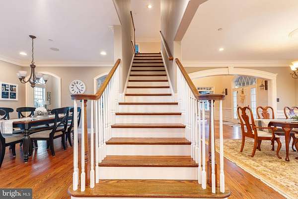- Bar, Breakfast Area, Ceiling Fan(s), Combination Kitchen/Dining, Crown Moldings, Dining Area, Formal/Separate Dining Room, Island Kitchen, Open Floor Plan, Primary Bath(s), Recessed Lighting, Soaking Tub Bathroom, Stall Shower Bathroom, Upgraded Countertops, Wainscotting, Walk-In Closet(s), Walk-In Shower Bathroom, Wet/Dry Bar, Wood Floors