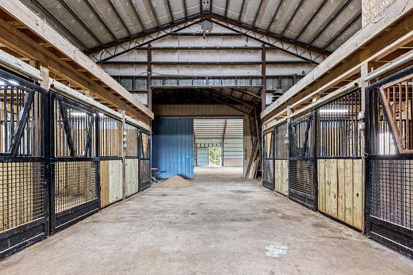 ONLINE ONLY AUCTION - Bidding Ends Wednesday, March 25, 2026 at 6:00 PM Auction Terms: As Is / Non-Contingent / 10% earnest money deposit / 30-day settlement / buyer's premium applies / selling subject to seller confirmation. See full terms and conditions. Kristin Halfhill-Larimore, Principal Auctioneer, A fully operational equestrian facility in the heart of Kentucky horse country, turn key ready. The steel-frame main barn houses 16 stalls with a direct connection to a 60x70 indoor riding arena/bull pen - purpose-built for year-round training, colt starting, or a lesson program - while a secondary 3-stall barn adds flexibility for quarantine, breeding, or lay-up. Supporting structures include a new equipment shed, hay hoop barn, and two double run-in sheds. The infrastructure here is complete. There is nothing left to build. Living quarters sit inside the main barn: a barndominium taken to the studs and fully rebuilt in 2023 with all-new electrical, lighting, and plumbing. Hardwood floors, custom windows, and vaulted ceilings give the 1,800-square-foot open-concept residence a warmth that surprises first-time visitors - this is not a barn apartment, it is a home that happens to be steps from your horses. The primary suite opens onto a private balcony overlooking the pastures. Two full baths serve the upper level; a half bath off the barn aisle. Outside, a grass jump field and wooded riding trails wind through 37 gently rolling acres. The property has been used as for breeding/training and hosted children's lesson programs, and the layout suits virtually any discipline: Thoroughbreds,Saddlebreds, eventers, dressage, hunter/jumpers, trail riders, or a serious colt-starting operation. Multiple buildable home sites offer a clear path to adding a primary residence while the operation runs. Thirty-five minutes to Rood & Riddle and Hagyard equine hospitals and the Kentucky Horse Park. Forty-five minutes to Keeneland. Fifteen minutes to Paris, with Winchester and Mount Sterling each under twenty. Visit for full details and to place your bid.