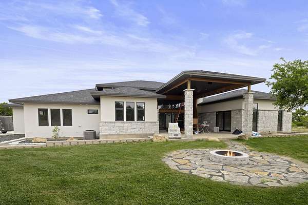 Welcome to this exceptional 2023 constructed home, offering an impressive 3,780 square feet of living space, 4 bedrooms, 4 full baths, 1 half bath, a home office, game room, surround sound speakers, security system, and a mud room, all thoughtfully designed to provide you with the utmost comfort and convenience. With an oversized 3-car garage, abundant storage options, and a spacious 5+ acre lot boasting stunning Hill Country Views, this home truly has it all. Step inside to discover European custom cabinetry, modern light fixtures, frameless showers, and unique luxury finishes throughout, creating a truly upscale atmosphere. The large covered back porch is perfect for hosting gatherings and enjoying outdoor living. In addition to these remarkable features, this home also offers off-grid capabilities including a well, propane, and septic system, ensuring self-sufficiency and sustainability. As an added bonus, enjoy the benefits of a community wildlife exemption with Black Buck Antelope, that will decrease your tax base while enhancing your connection with nature!