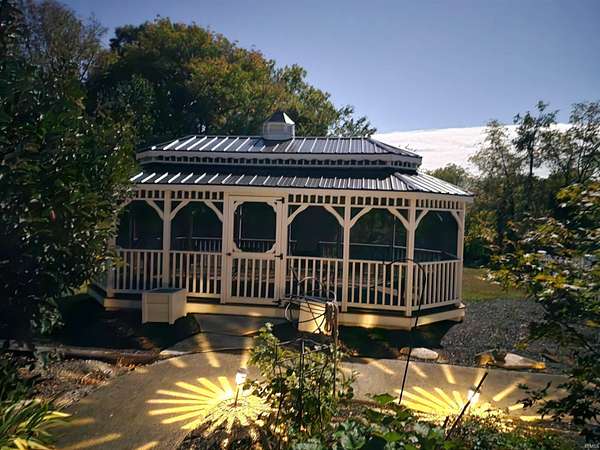 Stunning Estate with Scenic Views on 7.52 Acres Welcome to this remarkable 5-bedroom, 3.5-bath home offering over 5,000 finished square feet of beautifully designed living space, nestled at the end of a tree-lined driveway. Set on 7.52 picturesque acres, this property offers privacy, serenity, and space to entertain both indoors and out. Step inside the wide open foyer and experience grand, spacious rooms throughout. The main level features two fireplaces, a mix of classic and rustic charm with exposed brick interior walls, and large living and dining areas perfect for gatherings. The expansive family room open to a covered porch, complete with a built-in outdoor grill-ideal for summer entertaining. Relax on the large open back patio, unwind in the oversized screened-in gazebo, or stroll through the fenced-in flower garden. Each of the five bedrooms is generously sized, including a luxurious primary suite. The partially unfinished basement boasts 1,344 square ft, a fireplace, and high ceilings, offering endless possibilities for future living space or recreation. Additional features include a 2-car garage, beautiful panoramic views, and a rare blend of indoor comfort and outdoor tranquility.