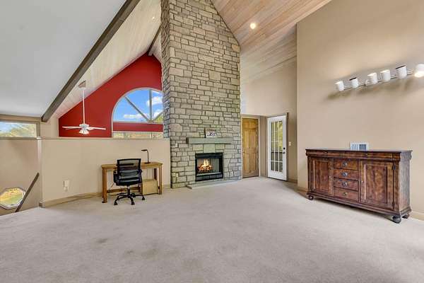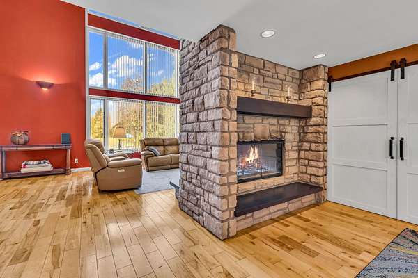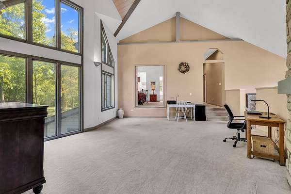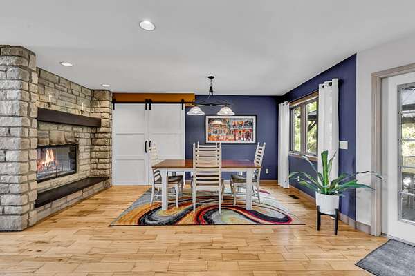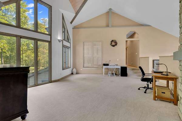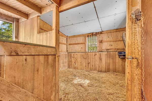 Horse Lovers! Animal Lovers! Nature Lovers! Escape the bustle & congestion while being on 6.2 scenic acres just 15 minutes from Bridge Park and Rails to Trail bike/walking path. The property includes a 4-stall horse barn with a big 500 bale loft and power & water plus 2 paddocks and 3 separated pastures (total pasture area is approximately 2.5 acres), and a pond complete with fish & a dock. Ideal for hobby farmers, gardeners, animal lovers or anyone dreaming of a home-based workshop or art studio. All this plus a light-filled contemporary styled home with high ceilings and open spaces. Stone fireplace is double-sided to living room/dining room. Lovely wood floors on the 1st floor make the space flow. Kitchen has more than enough cabinets and work area for any cook plus a breakfast spot with a great view towards the yard and paddock area. Upstairs is unique with a family room/multi-use space with stone fireplace overlooking the living room. The large primary suite with its ensuite bath has viewing doors that can open to this space so fireplace can be enjoyed. Two other bedrooms complete the second floor along with another full bath. The closet space through-out is ample. The basement has a high ceiling and can easily be finished for more space. Home has 2 hotwater tanks, 2 HVAC systems, a 300amp total with 2 150amp electric panels, a 200' well, and a 3/4'' water line. The garage is heated and cooled & also has hot & cold water spigots - ideal for a workshop. The acreage behind the house has mature woods with many paths for riding or walking. Truly an exceptional property!