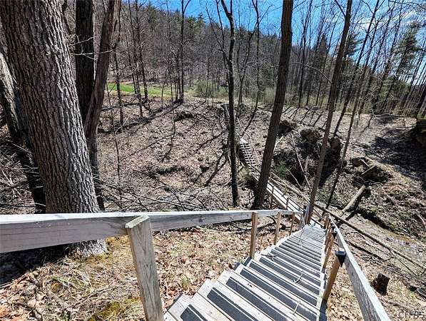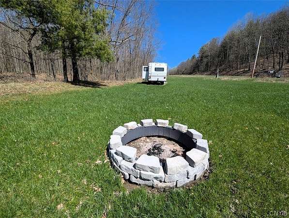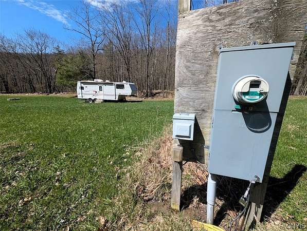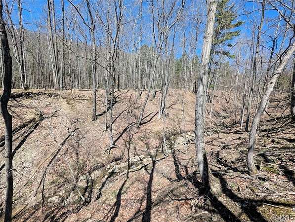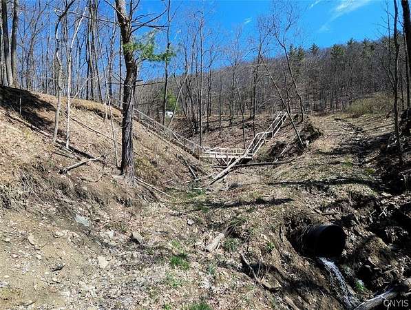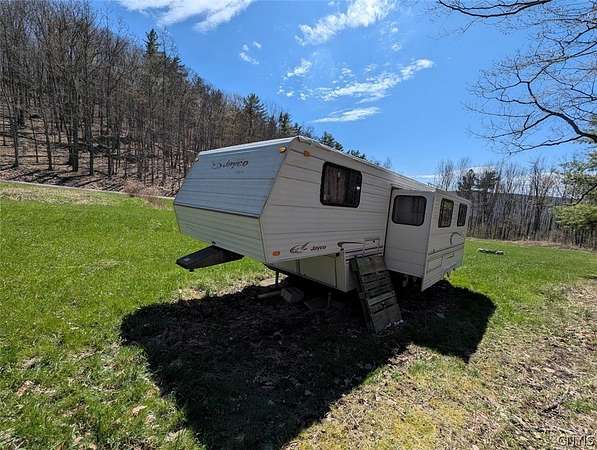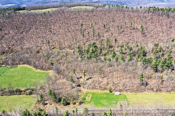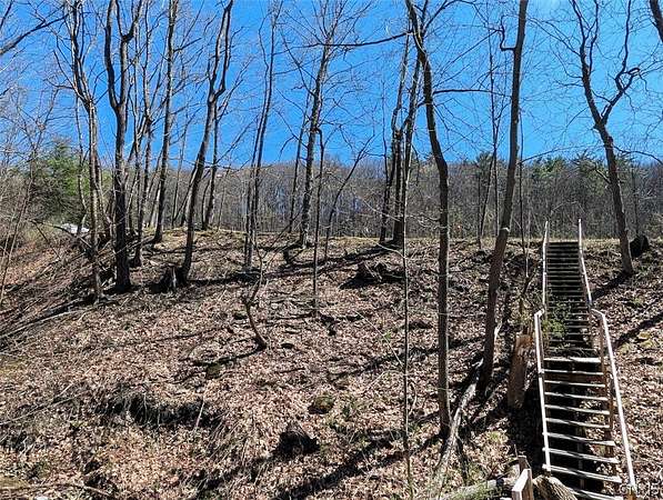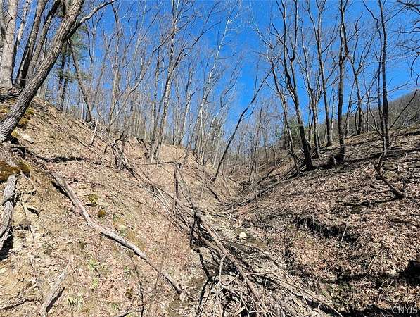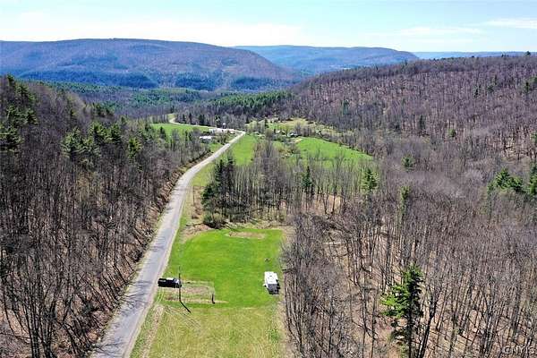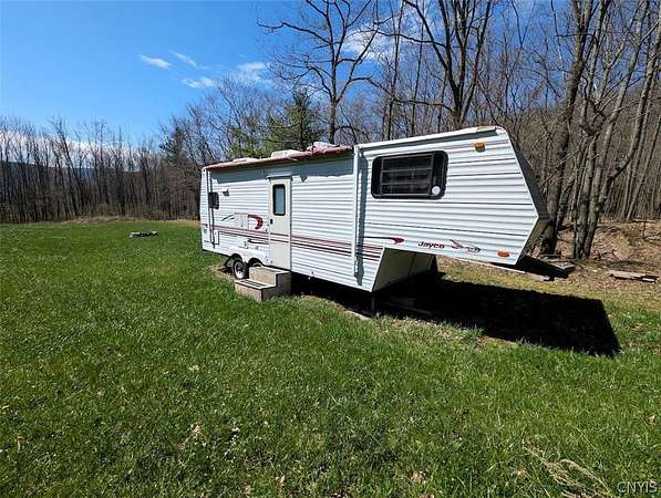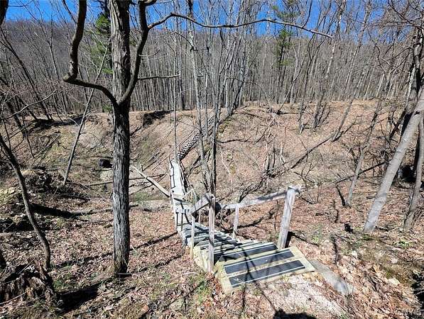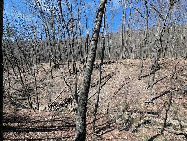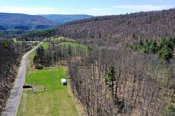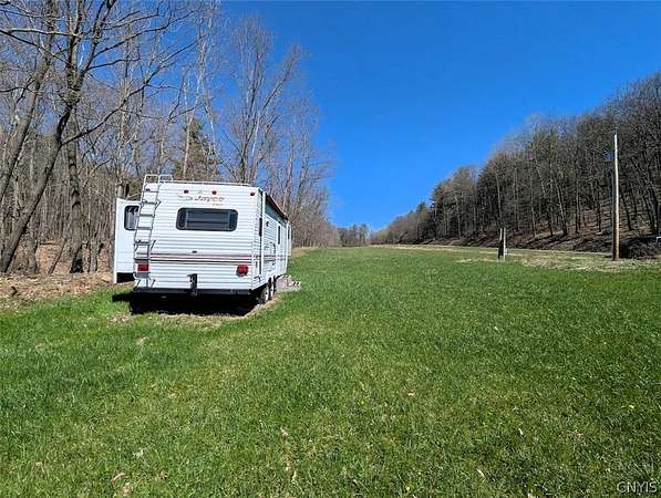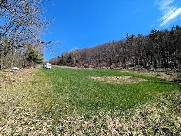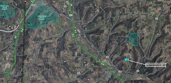 Situated in the rolling hills just north of the Canisteo Valley, this 14-acre property offers a private and scenic setting ideal for a country retreat in Canisteo NY, Steuben County. Located along a paved, year-round maintained road, the property features a large, level clearing at the front with an existing electric hookup and a fifth wheel camper with a slide-out already in place. Whether you're looking to build a home, establish a cabin site, or simply park your RV and enjoy the peaceful surroundings, this property provides a great starting point. From the roadside clearing, the land transitions west into a diverse landscape featuring a small seasonal stream flowing through a deep ravine. Access across the ravine is easy with recently installed stairs as well as an existing ATV trail that continues throughout the property. Beyond the ravine, a wide bench leads into a rising hillside dominated by hardwood timber, including a strong presence of oak. The terrain continues to climb to a ridge-top where the land levels off again offering additional opportunities for exploration, recreation, and hunting. This is an excellent opportunity to own manageable acreage in a quiet, rural setting with immediate access to outdoor recreation. Burt Hill State Forest is located just over a mile away providing 403 acres of additional land for hunting, hiking, and exploring. An existing survey will convey with the property, and high-speed internet is available at the road.
