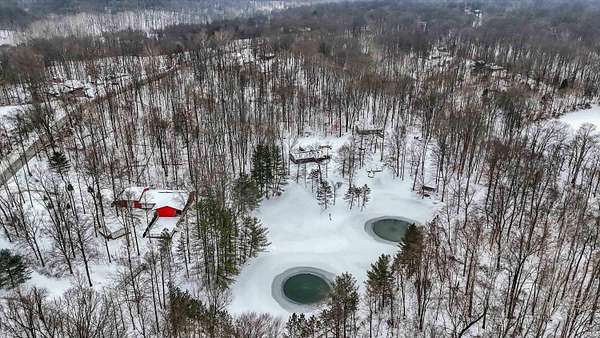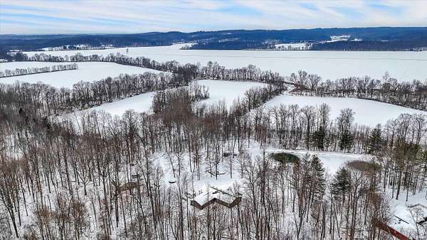 Situated on 15.87 scenic acres, this well-appointed ranch offers privacy and refined country living in a peaceful natural setting. The 1,920-square-foot home features a light-filled main living space enhanced by skylights, creating an open and inviting atmosphere ideal for both relaxing and entertaining. The property showcases a picturesque 2-acre stocked pond, providing a beautiful focal point and the perfect place for fishing or quiet evenings overlooking the water. Expansive grounds allow ample space for recreation, gatherings, or simply enjoying the surrounding landscape. A 2-car attached garage is complemented by an impressive 50 x 30 heated 4-car detached garage -- a standout feature offering exceptional versatility. Ideal for car enthusiasts, hobbyists, equipment storage, or workshop use, the structure provides generous space for projects, recreational vehicles, or a dedicated workspace separate from the home. The home has recently been connected to city water while still retaining the existing well pump, offering added convenience along with a valuable secondary water source for outdoor use. A rare opportunity to enjoy acreage, water views, and privacy in a serene setting.