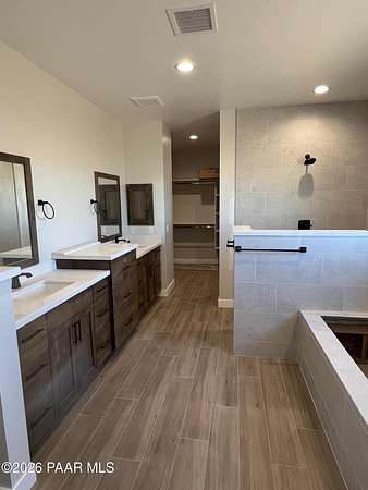 - Ceiling Fan(s), Counters-Solid SRFC, High Ceilings, Kitchen Island, Live On One Level, Master Downstairs, Quartz Countertops, Soaking Tub, Walk-In Closet(s), Wash/Dry Connection