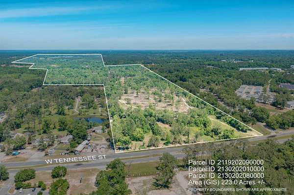 Discover the possibilities of this breathtaking 213-acre lot for sale! Zoned for commercial, residential, and TPA. PD and SUB future land use. This stunning property features beautiful rolling hills, two tranquil ponds, and an abundance of hardwood trees. With 600 feet of frontage on W Tennessee St and easy access to utilities, this lot is perfect for new development. Alternatively, it could serve as your own private outdoor sanctuary for hunting and relaxation. Plus, with two additional parcels included in the sale, the opportunities are endless. Don't miss out on the chance to make this remarkable property your own! Property includes W. Tennessee St., on the southside northwest passage on the northside and is adjacent to the new Amazon warehouse facility. Includes 2130202010000, 2119202090000