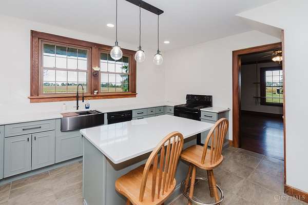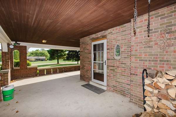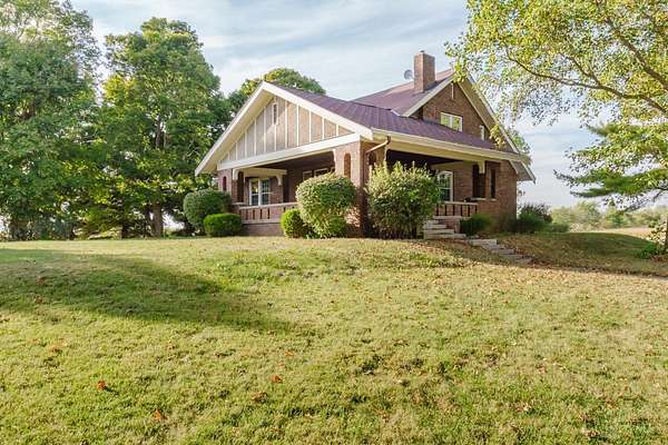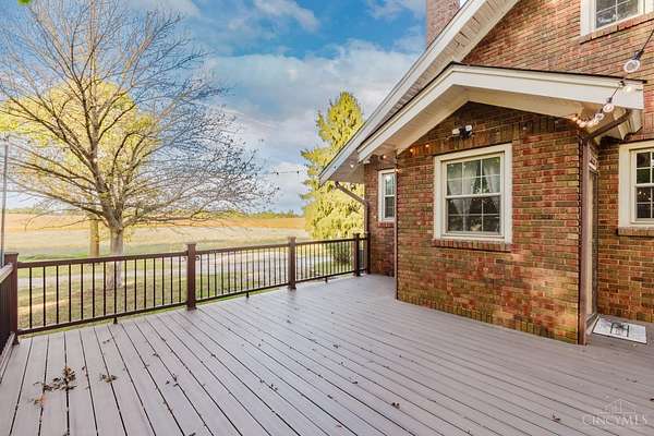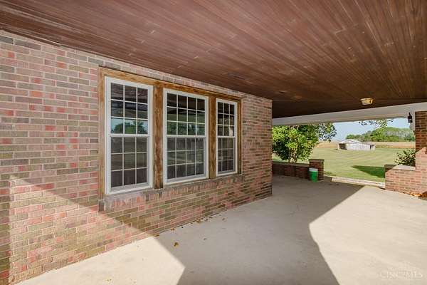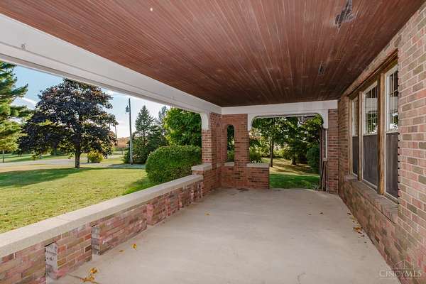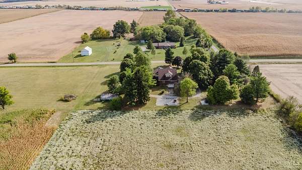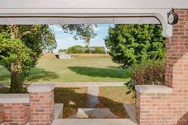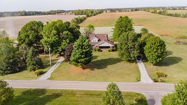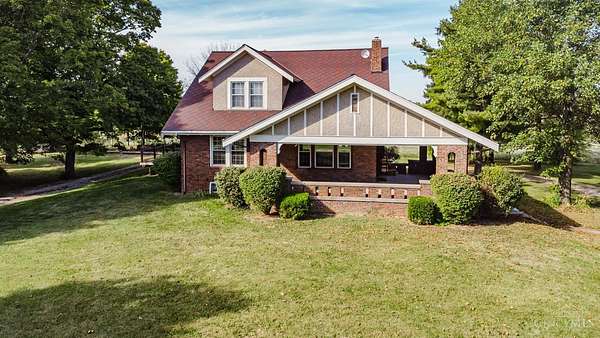Beautifully maintained 100-year-old brick home on 5 acres of peaceful country setting between Eaton and the Indiana border. This 4 bedroom, 2 bath two-story offers timeless character with refinished original hardwood floors, wide crown molding, pocket doors, and glass door knobs. The wraparound porch adds charm and a place to enjoy the countryside views. Inside, the large Family Room with WBFP opens through glass folding doors to the Dining Room. The updated Kitchen features quartz counters, island, and original built-in pantry. A spacious Bedroom and full Bath complete the main floor, with 3 more Bedrooms and another full Bath upstairs. The full basement includes a heated one-car garage and plenty of storage. A rear deck overlooks the rolling acreage, completing this beautifully cared-for country home.