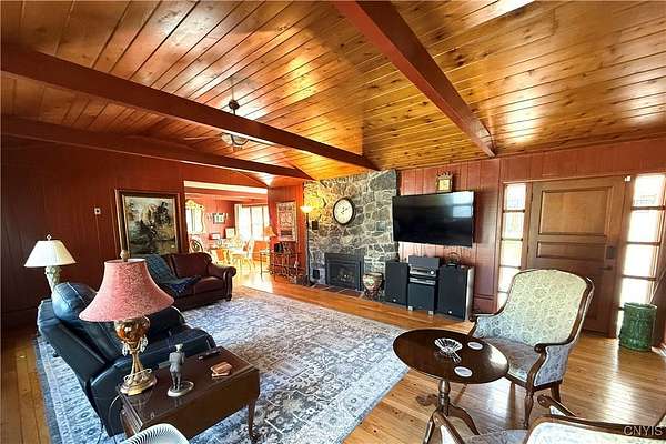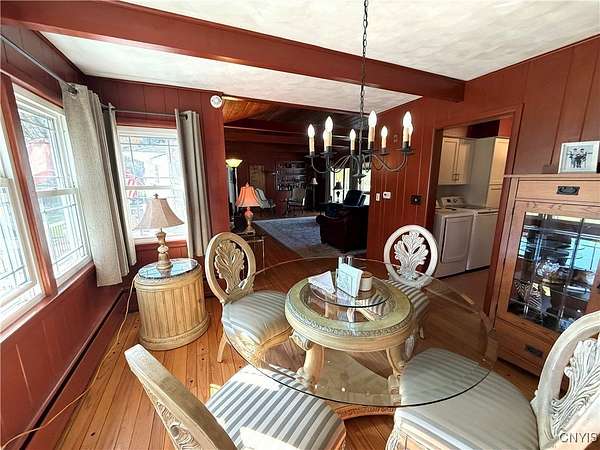 Gorgeous and well-maintained ranch home nestled on nearly 4 serene acres in the Westmoreland School District. This property offers the perfect blend of comfort, privacy, and tasteful upgrades throughout. Inside you'll find three spacious bedrooms and one and a half bathrooms, along with an updated kitchen featuring quartz countertops, new appliances, and ample cabinet space. Enjoy both an eat-in kitchen for everyday dining and a formal dining area for hosting. The wide-open living room is centered by a cozy fireplace and accented with stunning cherry woodwork and beautiful hardwood floors that carry warmth throughout the home. Step outside to two separate decks, each offering peaceful views of the private, tree-lined yard - the perfect retreat for morning coffee or evening sunsets. For added convenience, the washer and dryer were moved from the basement to the first floor for easy accessibility, though they could be relocated downstairs again if preferred by the new owner. Beyond the aesthetic updates, the home has also been thoughtfully improved with full insulation, updated electrical, new gutters, and mostly new vinyl windows, offering energy efficiency and peace of mind - all with low taxes, making this an even more enticing home. A wonderful opportunity to own a move-in ready ranch with acreage and character!