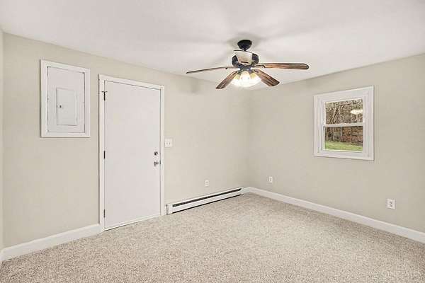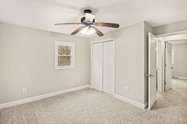 Est $1,096/moUpdated one-level living! Move-in-ready ranch featuring a large living room with fireplace, eat-in kitchen with wood cabinetry, three spacious bedrooms, spa-like hall bath, and convenient laundry hookups off kitchen. Fresh paint and new carpeting throughout. Plus a front porch, rear shed (with electric!), and covered patio overlooking wooded privacy. All situated on a nearly 2-acre lot!