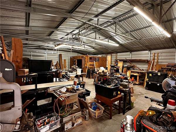 Est $2,403/moSpacious pool home with substantial workshop/detached 3 bay car garage (30'x40') and dual covered RV carports with high clearance on approximately 2 acres in the conveniently located neighborhood of Inverness Highlands. This 2,408 sq ft home also has a 2 car attached garage, 2 bedrooms, 2 full bathrooms, 1 half pool bath, outdoor shower, generous size Florida room, living room, dining room, family room with a wood burning fireplace, and an outdoor fire pit. New roof in 2023, new well in 2024, and HVAC system was replaced within 5 years. Nearby restaurants, shopping, medical offices and schools.