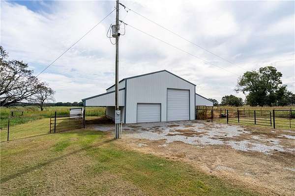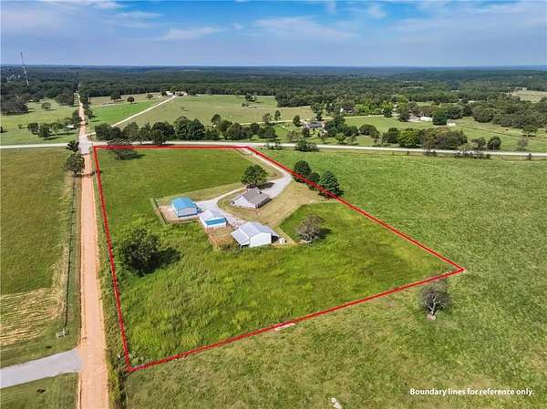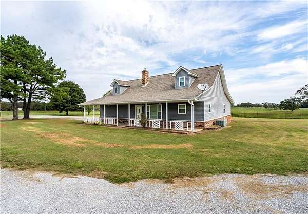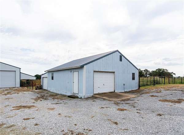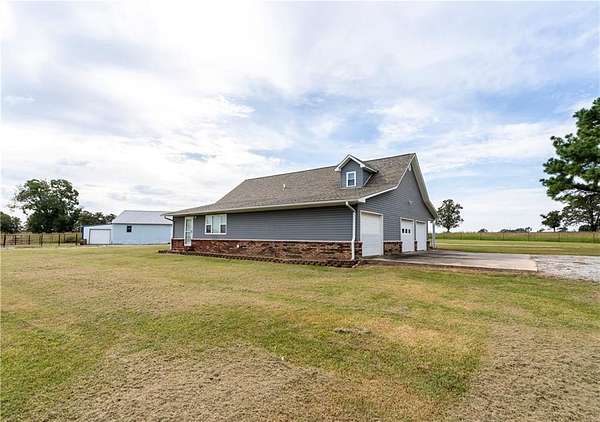 Stunning 2-Story Home on 7.78 Acres with Multiple Outbuildings! This beautiful 3 bed, 3 bath home features vaulted ceilings, rich wood floors in the living room and stairway, a cozy den, and a semi-finished room perfect for a gym, hobby space, or extra storage. Additional highlights include a 2-car attached garage, attic storage, new windows, a 2024 roof, and an electric entry gate. Sitting on 7.78 acres, the property is ideal for a hobby farm or a few horses and includes three outbuildings: a 30'x50' shop with 4 overhead doors and drive-through access, a 29'10''x41'6'' building with multiple rooms, and a 40'x32' building with tall overhead door, storage loft, and small corral. Just 2 miles north of Kansas, OK on Hwy 59. Water is on a well but rural water is available. Main heat source is a heat pump, but has a pellet stove in the family room and propane wall heater in den and bonus room.