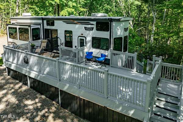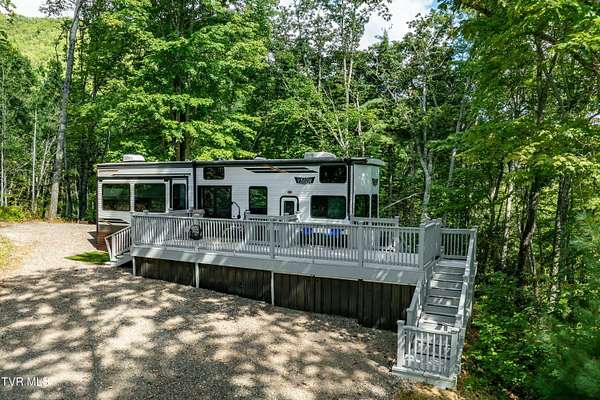 Welcome to your very own Tennessee Mountaintop! Perched on over 12 acres, this property offers turn key readiness to enjoy today paired with endless possibilities in the future to complete it just the way you envision to live out your dreams. Perched just inside the TN state line, you will enjoy a close proximity to all of the innumerable adventures and attractions in the High Country region, including Watauga Lake, the VA Creeper Trail, Boone, Blowing Rock, area ski resorts, and more! Upper RV conveys fully furnished so that you can close today and watch the leaves come to life with vibrant color this fall. 3 full RV hookups can be utilized immediately or that infrastructure can be used to supply tiny homes or future construction. As you wind up the private drive, you will first notice an area excavated for a spacious garage to house all of your tools and toys. Climb slightly higher and have your breath taken away from the gorgeous gazebo with long range mountain views, a firepit, and grill ready to entertain and soak in the vistas and breezes. RV hookups just above enjoy ample parking and access to the overbuilt 12X24 shed which currently presents multiple opportunities itself including being finished out to serve as a bath house in the future. The large and affixed upper RV is in like new condition and insulated around the base with a large open deck with weather proof roll out storage below welcoming you to stay at your new property often and immediately. Take a trail from the upper RV through the woods to a final level homesite offering both wooded privacy and long range mountain views. This trail also connects to a former railroad bed offering endless hiking and ATV opportunities. Come and let your imagination run wild as you decide whether to use the property as it has been with the perfect setup for glamorous camping, or further develop it into a tiny home retreat or the site of your forever mountain home! Don't miss this incredible opportunity where so much of the work and infrastructure has already been completed for you, come and see today!
