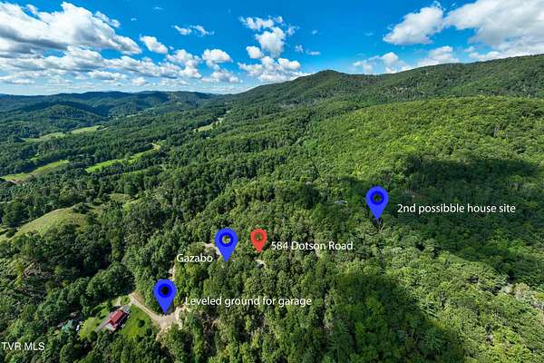 Directions From Mountain City, travel south on 421 to Dotson Road and turn right. Travel to the Y intersection of Dotson Road and Bill Dotson Road and bear left. The driveway for the property will be on the right with a sign. Continue past the first home to the top of the mountain.