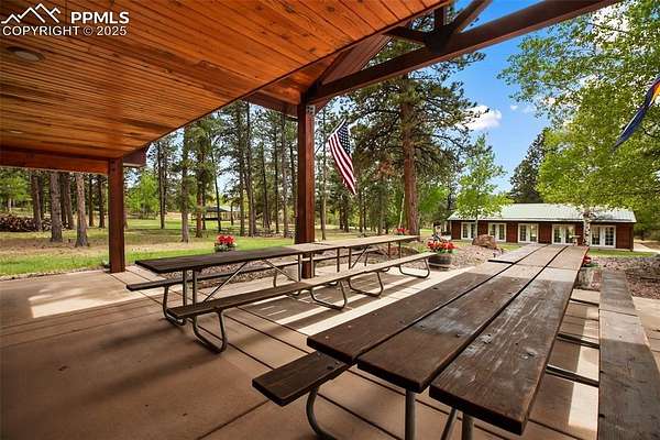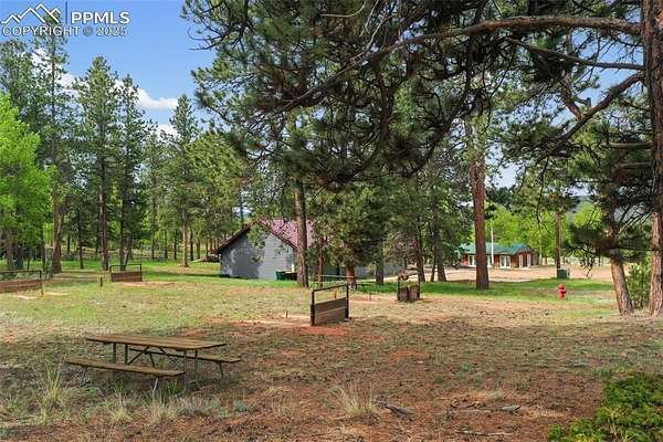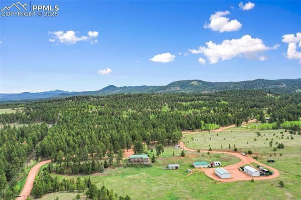 Welcome to Sourdough Ranch - A Rare Colorado Legacy Property Discover over 420 acres of pure Colorado beauty just one mile north of downtown Woodland Park. Sourdough Ranch is a one-of-a-kind mountain haven offering unobstructed, panoramic views of majestic Pikes Peak and an unmatched blend of usability, accessibility, and opportunity. This breathtaking, fully mitigated property is a pristine mix of quaking Aspens, towering Pines, Ponderosa forests, and open rolling meadows - every acre is usable and inviting. Featuring twelve subdividable 35-acre parcels, it presents a rare development or conservation opportunity. A collection of guest cabins, a caretaker's residence, barns, workshops, pavilions, and a fully equipped bathhouse with full kitchen provide endless possibilities for hosting or expansion. Resort status, Sourdough Ranch is ideal for weddings, corporate retreats, reunions, summer camps, or destination events. This property offers miles of hiking, biking, and ATV trails and immediate access to National Forest for further outdoor adventure. Enjoy a peaceful pond with a dock-perfect for fishing or quiet reflection. Explore dramatic rock outcroppings scattered throughout the landscape, adding character and adventure. Whether you're building a private family retreat or developing a multi-use legacy ranch, the location is unbeatable: 1 mile to Shining Mountain Golf Course, 45 minutes to Colorado Springs Airport, and just over an hour to world-class fly fishing and skiing. Sourdough Ranch isn't just a property - it's a lifestyle, an investment, and a once-in-a-lifetime opportunity. Schedule your private tour today and experience the extraordinary.