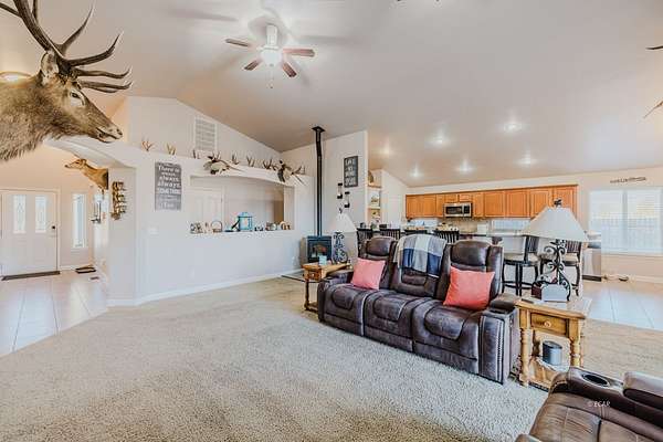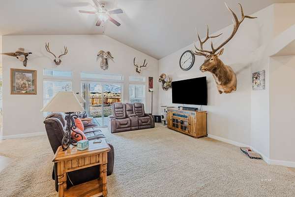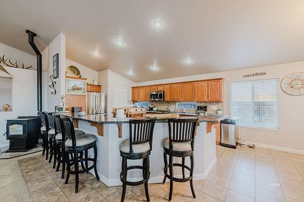 Welcome to this well-maintained single-level home located just off Lamoille Highway, offering convenient access while providing space, comfort, and functionality. Situated on a generous 2-acre lot, this 4-bedroom, 2.5-bath residence was built in 2013 and features a thoughtfully designed floor plan with a large entryway that opens into spacious living areas.The home offers a large kitchen with granite countertops, ample cabinetry, and great flow for everyday living and entertaining. A pellet stove adds warmth and efficiency, while multiple patio access points create a seamless indoor-outdoor connection. The huge primary suite provides a private retreat and a well-appointed ensuite. Additional interior features include a water softener and a continuous hot water system, ensuring no waiting for hot water. A spacious 980 sq ft, 4-car garage includes a convenient half bath, offering excellent functionality for projects or storage. Outdoors, enjoy a covered patio, fenced yard, and a designated fire pit area. Additional features include a 288 sq ft shed with a roll-up door along with plenty of room for parking, toys, and future improvements.