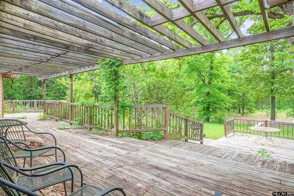 Perfect for family living and entertaining, this property sits on 10+ acres with an open floor plan offering scenic views from multiple angles. The kitchen features double ovens, island with cooktop, breakfast bar, separate breakfast area, walk in pantry and a separate formal dining area. Spacious primary suite plus a second bedroom that could serve as a private secondary suite. Third bedroom offers flexibility and could also be used as a home office. Enjoy the outdoors on the wraparound deck—ideal for entertaining or relaxing while taking in the natural setting with deer and other wildlife. Additional features include a storm shelter in the back yard, RV parking and a building on the right side of the property. Workshop offers approx. 1,400 SF enclosed with electric on slab, plus approx. 1,100 SF carport. Property serviced by well water and conventional septic. Seller-owned solar panels provide added efficiency. Upgrades include engineered wood flooring and a metal roof. Property needs some TLC and is being sold "AS IS". Great opportunity with endless potential.