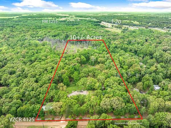 From I-20 East, exit FM 1255, stay on the service road going east. Turn right on VZCR 4125, road will curve around, take the first right, property is on the right.