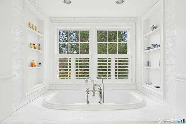Elegant, sun-drenched and sophisticated, this timeless country estate, built by Alex Kaali-Nagy and decorated by Lynn Morgan, offers the ultimate in superior quality construction, luxurious amenities, exceptional millwork, refined architectural details, built-ins galore and a fabulous versatile floor plan for easy living and gracious entertaining. With four fully finished floors, highlights include 7 large ensuite bedrooms with walk-in closets,10 foot ceilings,7 fireplaces, front to back grand entrance hall, elevator, full house generator, slate roof, expansive covered rear porch, bluestone terraces, fabulous chef's eat-in kitchen opening into the family room, handsome library and adjacent home office, wet bar, spectacular second floor playroom, exercise room and so much more. The serene private 4 acre property on coveted West Rd. is equally impressive. The deep play yard is surrounded by majestic trees, beautiful professional landscaping and glorious gardens. There is a fabulous new Gunite heated pool by Shoreline with retractable cover, a charming custom fitted gazebo and an amazing newly restored circa 1790 barn with loft and several garage spaces. In addition, there is courtyard parking for guests and a separate service entrance for convenience. Make this your forever home to love and cherish and build special memories with family and friends. Welcome to 584 West Rd.!