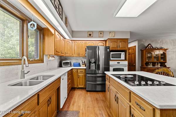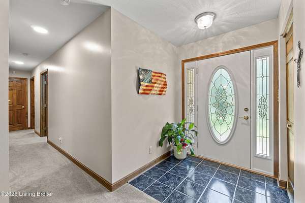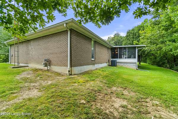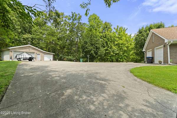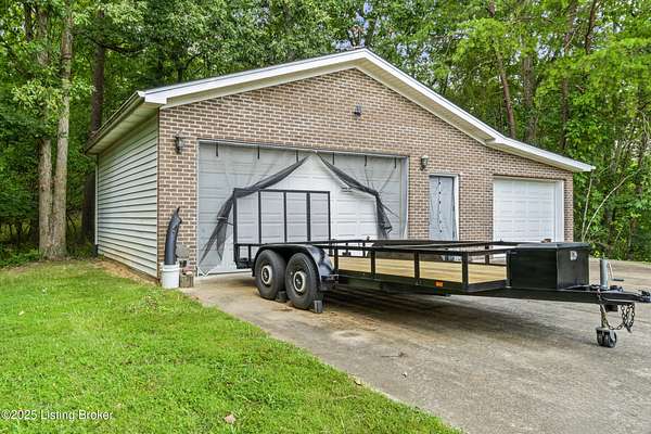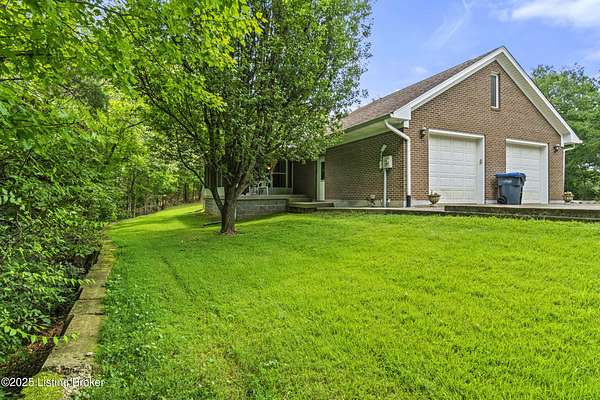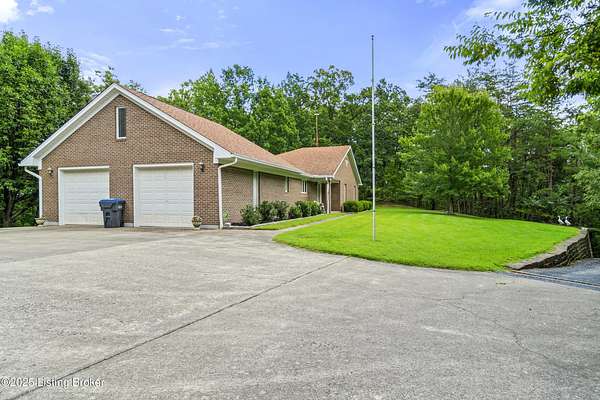 Bullitt County- Close to 65 and about 25 Minutes from downtown Louisville. Approximately 9 ACRES Total, this includes lot 7 (034-SE0-08-004 deeded separately 1.2 acres) This home surrounds you with nature, deer's wonder through regularly. OVER 2300 sq ft of above ground finished living space- 3 Bedrooms Plus a 326 sq ft ''other'' above the garage with heat and air and private access from the garage. Huge screened patio across the back of the home viewing the natural surroundings. This home has a very large primary suite, garages galore (5 car/ over sized) and not a huge amount of grass cutting. This home offers nature with the convenience of 65 within minutes, plus tons of garage space you don't find everywhere. Please do not enter driveway if you don't have an approved appointment.
