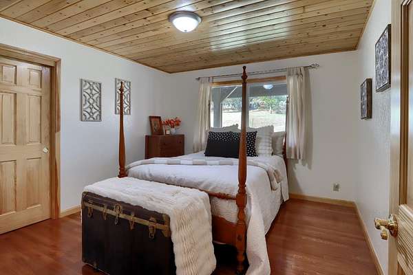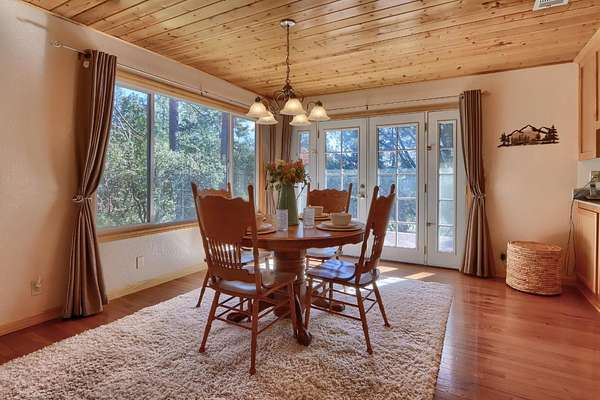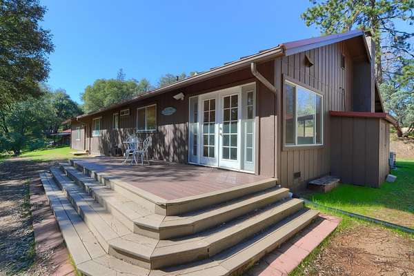 Step into your custom mountain home on 1.5 acres featuring gentle to rolling terrain and sweeping views of the Sierra Nevada, dotted with pine and oak trees. Located on a paved corner lot in the desirable Lushmeadows Mountain Estates. This 3-bedroom, 2-bath, 1,546 sq ft home offers knotty pine ceilings throughout, hardwood floors, and a wood-burning fireplace insert in the living room. The dining room opens to an outdoor patio deck through French doorsperfect for indoor-outdoor living. The custom kitchen includes handcrafted cabinetry, gas cooktop and oven, dishwasher, microwave, pantry, and a large window that fills the space with natural light. The guest bathroom features a spacious walk-in shower, ceramic tile flooring, and custom cabinetry with ample storage. Both guest bedrooms offer hardwood flooring and large windows. The primary suite features hardwood floors, a walk-in closet, and peaceful southern views where deer are often seen. The primary bath showcases wood siding and a large walk-in shower. Additional features include a metal roof, 2-car attached garage, 3-car detached garage/workshop with garage door opener, workshed, and paved driveway. As part of Lushmeadows Mountain Estates, enjoy access to two private lakes (Dawn & Mallard), clubhouse, and campground, with opportunities for fishing, kayaking, hiking, and enjoying the serenity of mountain living. Ideally located approximately 40 minutes from Yosemite National Park, Bass Lake, Lake McClure, and Lake Don Pedro. Perfect as a full-time residence, vacation retreat, or work-from-natures escape. Schedule your home tour today!