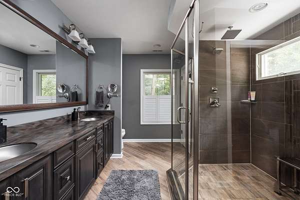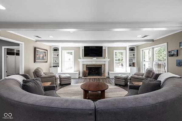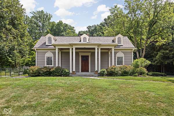Welcome to Walnut Hill, a stunning 2.5-acre retreat tucked within the rolling hills of the exclusive Brendonwood neighborhood. Set on private wooded acreage and priced under $900K, this rare property offers the feeling of a secluded escape while remaining just minutes from the heart of Indianapolis. Enter through Brendonwood's main gates and wind through one of Indianapolis' best-kept secrets to this beautifully maintained ranch-style home perched atop the hill. Designed for the ease of main-level living, the home features an expansive layout with incredible potential. Inside, you'll find over 4,300 square feet of living space, including four bedrooms and 3.5 bathrooms. The expansive primary suite, added in 2014, features vaulted ceilings, a private patio overlooking the backyard, and a luxurious ensuite with a walk-in closet with island, double sinks, dual opposing showerheads, and a convenient in-suite washer and dryer. The home was designed for effortless living and entertaining, with seamless indoor-outdoor flow. A bright four-season sunroom opens into a gorgeous paver patio, perfect for enjoying the surrounding nature year-round. With generous square footage and a flexible layout, the home also offers ample opportunity for the next owner to make it their own through thoughtful updates, design personalization, or the creation of additional spaces to fit their lifestyle. Residents enjoy easy access to Brendonwood's private amenities, just a short walk or golf cart ride away, including a golf course, swimming pool, tennis courts, and a basketball court. Meticulously maintained and full of character, Walnut Hill is a true year-round oasis, offering privacy, charm, and a lifestyle rarely found this close to the city.