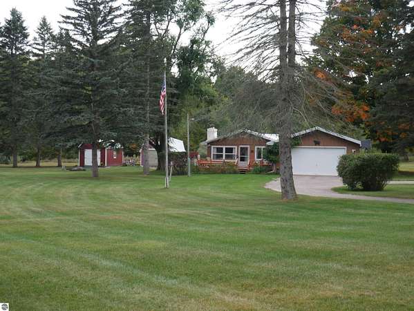 Move right into this well-kept 2-bedroom, 2-bath home set on 3 beautiful peaceful acres with a large yard, apple trees, and abundant wildlife. Inside you'll find inviting knotty pine walls, hickory cabinets, and a cozy wood-burning fireplace. A spacious front deck is perfect for relaxing and enjoying the peaceful surroundings. Close to thousands of acres of Huron National Forest and endless snowmobile and ATV trails! Updates include a new roof and electric panel (2024) new bladder tank and pump (2022). Property features an attached 2-car garage plus two storage sheds (24x26 and 12x20 both with electric) for all your equipment and toys. This home combines rustic charm with modern updates--ready for you to enjoy!