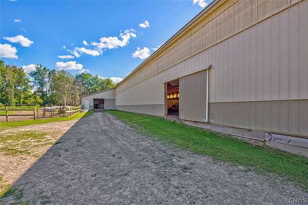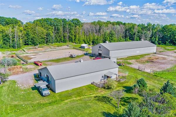 High-visibility 21-Acre site in the Town of Cicero, with lots of frontage along I-81 and South Bay Rd, and its located just 5 miles from the Micron Technology Center to be built in Clay, NY. This former equestrian facility features a 10,000 SF +/- Building, formerly used as a riding arena and stable, a 3,500 SF +/- Barn and a small Shed. Currently zoned Residential with an Agricultural exception, the site consists of two tax parcels with Gas, Sewer and Municipal Water available. This site would be an ideal residential development with an equestrian component to it, abuts a neighborhood to the east. This desirable location is close to Rt. 31 and Rt. 11, I-81 and I-481, Syracuse Hancock International Airport and a short commute to Syracuse. Shopping, restaurants, schools, entertainment and Oneida Lake are all just minutes from here.