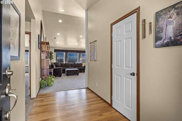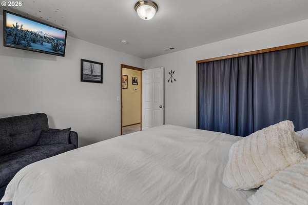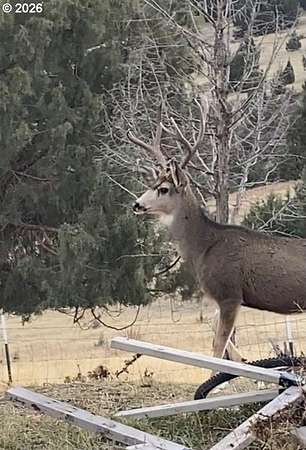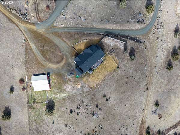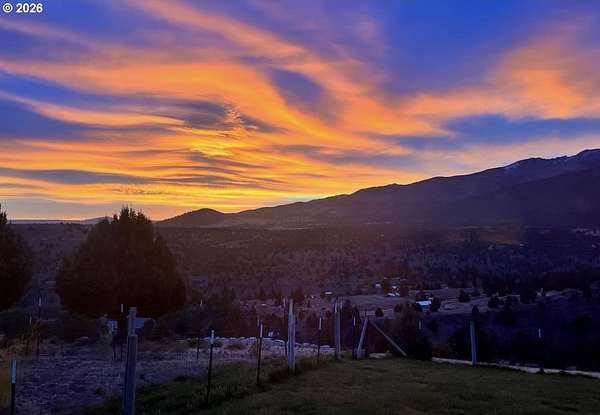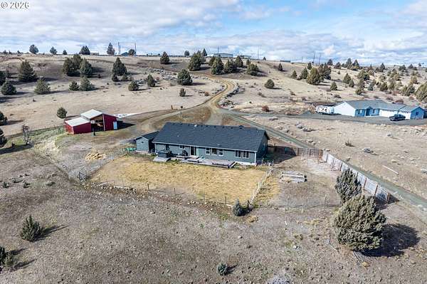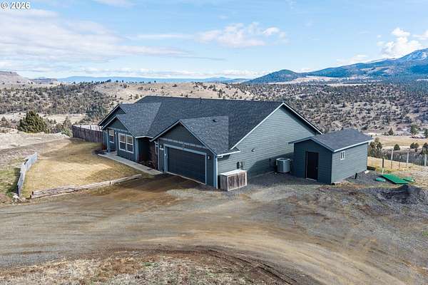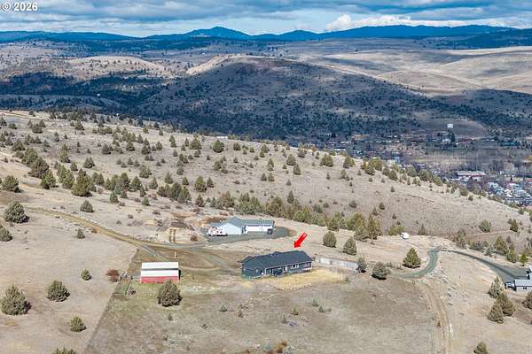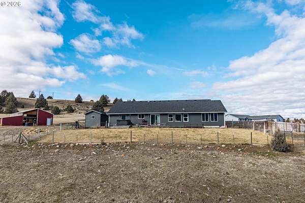 Custom-built in 2010, this 2,154 sq ft home sits on 5 fenced acres and offers breathtaking views of Canyon Mountain that feel up close and personal. The composition roof is just 2 years old, and the exterior paint was completed 1 year ago.Inside, you'll find vaulted ceilings in the living room and kitchen, creating an open, spacious feel. The living room features a shiplap accent wall, electric fireplace for ambiance, and a large flat-screen TV that is included. The open-concept kitchen offers an island, pantry, and black stainless-steel appliances.The home includes 4 bedrooms plus a non-conforming 5th bedroom currently used as an office, along with 2 bathrooms. The vaulted primary suite is generously sized and features a walk-in closet, double vanity, tile shower with dual shower heads, and a private toilet room. A southwest-end bedroom includes its own exterior entrance and mini-split system-ideal for guests, multi-generational living, or a private workspace.Additional interior features include a laundry room with utility sink and storage, ducted heat pump for efficiency, and a 598 sq ft attached 2-car garage.Outside, the 960 sq ft barn includes two animal stalls, a built-in chicken coop, and storage space. A 200 sq ft shed with concrete floor and built-in shelving provides additional storage. The property is connected to city water and served by a sand filter septic system.Enjoy established fruit trees-apple, pear, cherry, nectarine, and plum-along with raspberry bushes. Underground sprinklers for the yard. Relax on the wood deck overlooking the mountain views or unwind in the included hot tub after a long day.