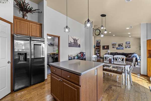 - Dishwasher, Free Standing Range, Free Standing Refrigerator, Island, Pantry, Plumbed For Ice Maker, Stainless Steel Appliance