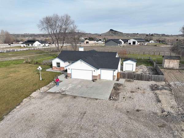 2.51 Acres | 3 Bed | 2 Bath | No HOA | Country Living at Its Best! Gem Irrigation ditch rights 2 1/2 shares. Well rights to irrigate if needed. Come take a LOOK! This charming home sits on 2.51 acres and offers the perfect blend of comfort, space, and freedom. Step inside to vaulted ceilings and an open-concept living area designed for both everyday comfort and effortless entertaining. The spacious master suite features a large soaker tub, a generous walk-in closet, and plenty of room to unwind after a long day. Recent upgrades include: New roof (June 2022) New interior paint (September 2022) Fruit Trees include: 4 apples (1 braeburn, 1 fuju, 2 honey crisp), 1 pear, 1 nectarine, 2 Oh Henry peach, 2 plum, and 1 apricot. Big garden space for your own delicious fresh produce. Enjoy breathtaking views of Lizard Butte and surrounding orchards right from your property. With NO HOA and NO CCRs, you have the freedom to truly make this property your own. There's ample room for pets, RV parking, and all your outdoor toys. Located just minutes from the Snake River, this property offers the peace of country living with convenient access to recreation and amenities. Don't miss this incredible opportunity to live your best life in the country!