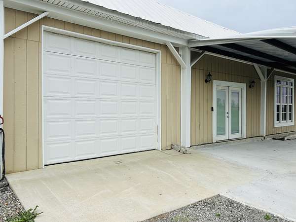 This property is only missing YOU! It has a main home, an RV garage with electricity, a storage shed, and a huge finished barn that is heated and cooled with running water AND expansion space...all on over 5 acres of stunning land! Tons of storage and a total of 7 car garages! Three attached side entry on home, two cars can fit in the RV garage, and two more in the finished barn drive-through tandem garage! Main home has an updated Kitchen and LVP throughout. Handicapped accessible with wheel chair lift in the garage and additional walk in shower in the primary bedroom. Roof on main home installed in 2023 and has 50 year warranty. HVAC in 2022. Windows and back door installed by Champion and have transferrable warranty. Finished barn is 1728 sq ft. (48x36 includes tandem garage). RV garage is 801 q ft. Storage or "she-shed" is 203 sq ft. On the land there are 7 perennial flower beds, fruit trees, and even grape vines. Professional pics and drone footage coming soon.