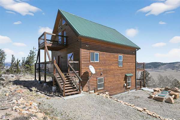 Perched above the South Park valley, this private mountain home captures sweeping panoramic views, end-of-road privacy, and the Colorado lifestyle buyers travel here to find. This beautifully updated 4-bedroom, 3-bathroom home sits at the end of a quiet road on 2.29 usable acres in Fairplay, Colorado. Offering 2,522 square feet across three levels, the home was positioned to take full advantage of its surroundings. Expansive windows fill the interior with natural light while framing panoramic views that evolve throughout the day from sunrise to evening alpenglow and star-filled skies. Outdoor living is the centerpiece, with five decks designed to maximize privacy and scenery. Enjoy morning coffee at sunrise or unwind as weather moves across surrounding peaks. Outdoor spaces create ideal settings for relaxing, entertaining, and enjoying Colorado’s natural beauty. The home, garage, and decks were recently stained, and new stone was added to the driveway and yard for improved access and curb appeal. Recently refreshed with new flooring, the home blends modern comfort with mountain character, suited for full-time living or a second-home escape. The finished walkout basement offers flexibility for guests, recreation, office use, or income potential. A large two-story detached garage provides abundant space for vehicles, storage, workshop use, and recreation gear. Located in Redhill Forest with private fishing rights, trails, and nearby National Forest access, the property remains within reach of Breckenridge recreation and an easy drive from the Denver Metro Area. End-of-road privacy, usable acreage, private fishing access, and Mosquito Range views create a rare opportunity to own a Colorado mountain property designed for year-round adventure and relaxation. Privacy. Views. Freedom. Colorado living as it was meant to be. Seller open to owner financing to qualified buyer