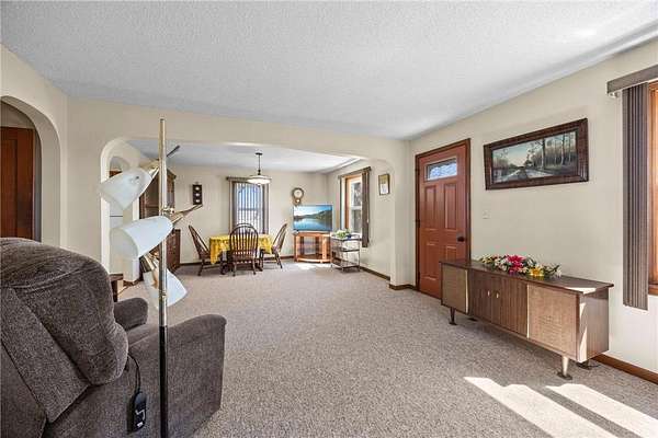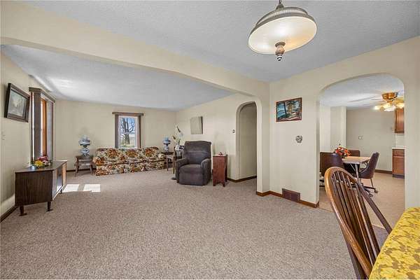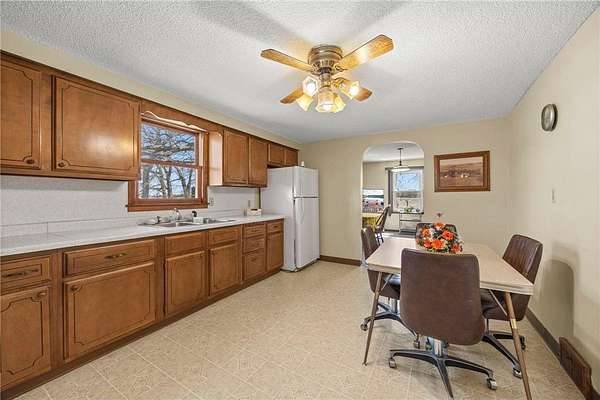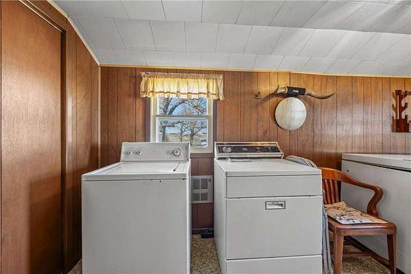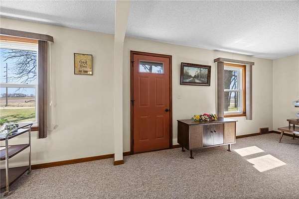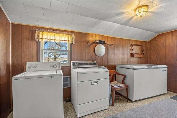 6.41 Acres with approx. 3 tillable acres, Full basement with potential for additional finished living space, Main floor laundry & primary bedroom for convenient one-level living, large kitchen with plenty of room for cooking and gathering, Maintenance-free siding & durable metal roof