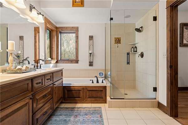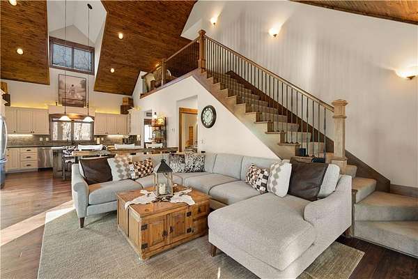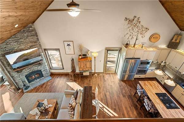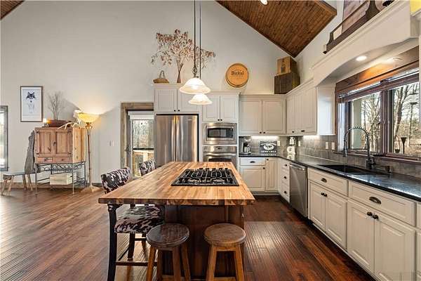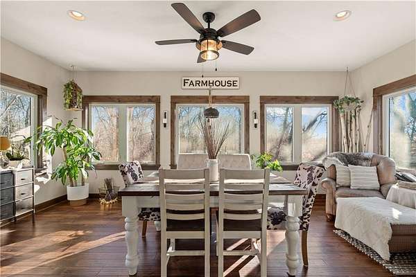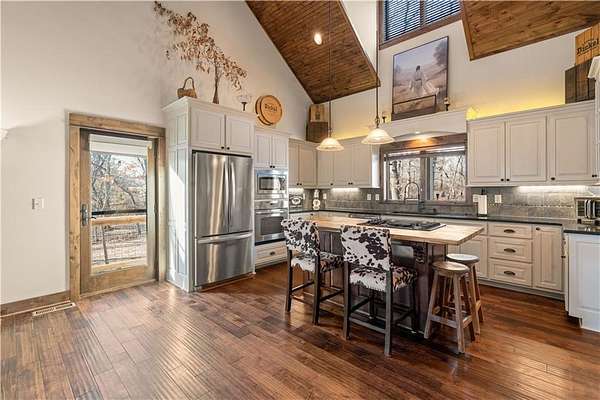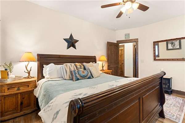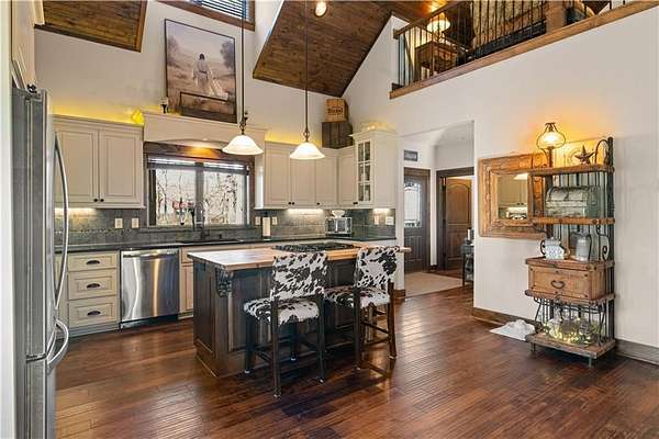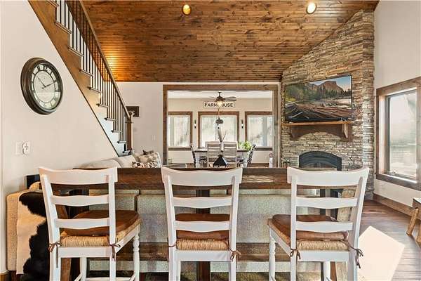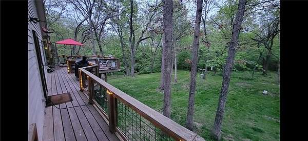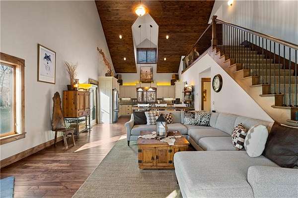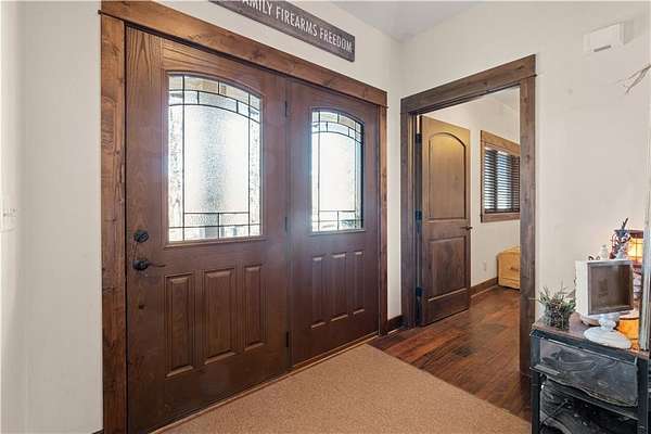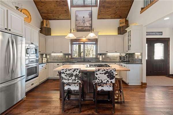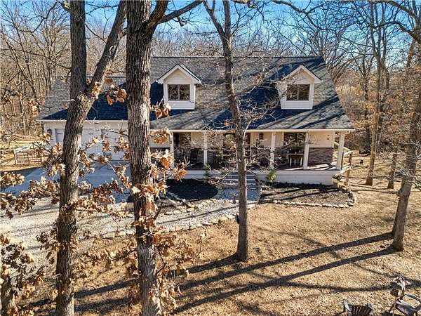 A true slice of paradise awaits with this custom-built 3-bedroom, 2.5-bath home set on nearly 10 acres of peaceful countryside. Surrounded by mature timber, open pasture, 1/4 acre pond, and extensive walking and riding trails, this property offers privacy, beauty, and functionality. A nearly 500 yard long driveway leads you to your own private retreat and an impressive 30x48 shop, fully insulated with closed-cell spray foam, featuring concrete floors, its own electric meter, 100-amp service, and two 8x10 garage doors with automatic openers. A brand-new Class 4 high-impact roof was installed in June 2025 and includes a 25-year warranty. Inside, the open-concept layout showcases vaulted wood ceilings and a striking floor-to-ceiling stone, wood-burning fireplace, creating a warm and inviting great room that anchors the home. Custom cabinetry, walnut-stained alder ceilings, birch hardwood flooring, alder trim, and custom doors highlight the craftsmanship throughout. The kitchen is appointed with granite countertops, stainless steel appliances, a gas cooktop, walk-in pantry, and ample storage. Outdoor living is enhanced by an 18x16 deck with illuminated railing, grill bump-out, and extended walkway-perfect for entertaining or enjoying the serene surroundings. Additional highlights include a Marathon Rheem 50-gallon water heater with lifetime tank warranty, water softener, whole-house water filtration system, GEO Thermal ground source heat pump, Andersen windows, and durable 2x6 exterior walls. A fenced backyard with doghouse and direct access to the home adds convenience, while the unfinished walk-out basement offers endless potential for future living space, workshop, or recreation area. Completing the beauty of this retreat-style home, this exceptional property blends craftsmanship, energy efficiency, and natural surroundings for refined country living at its finest.