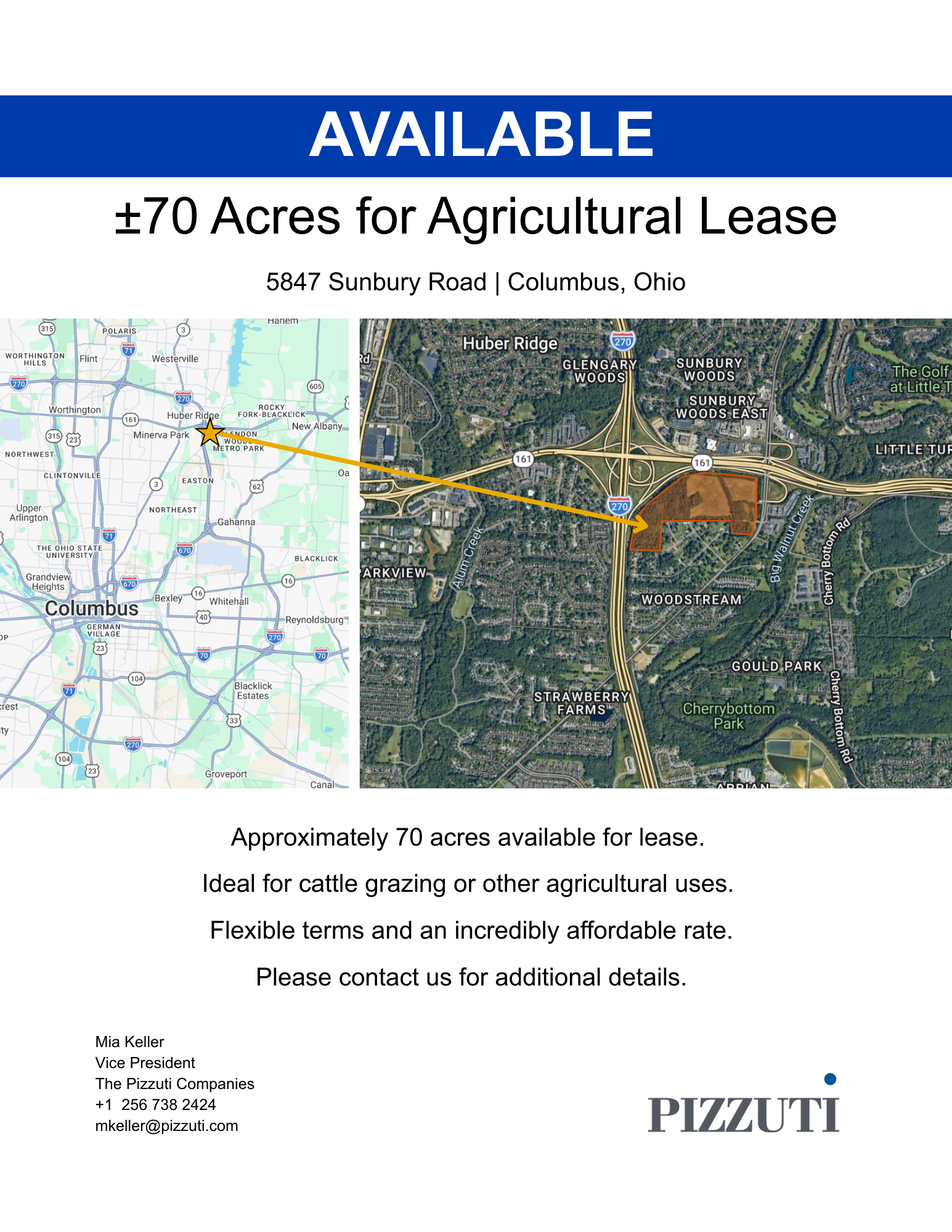 Our company is offering an exceptional rate to lease our 70 acres of vacant land in Columbus, Ohio. Terms are flexible, please reach out with any questions or interest. Thank you.