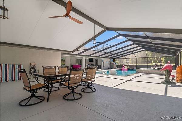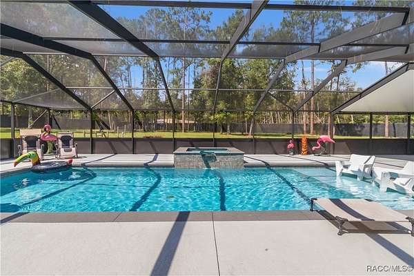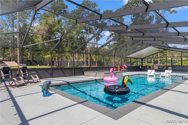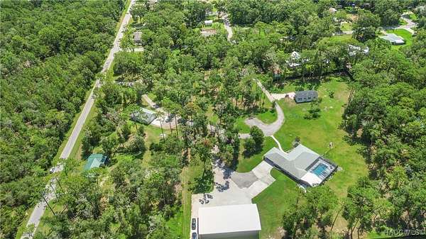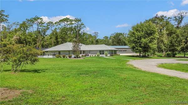 One or more photo(s) has been virtually staged. Come say Aloha to your dream property! This one of a kind 6.5-acre gated estate offers resort-style living, multi-home flexibility, and room for every dream. Behind the newly installed electronic gate, discover a meticulously kept property. With a 4-bed 3-bath custom built main home, brand-new guest residence, fully outfitted workshop, and massive garage all designed for comfort, connection, and convenience. From the heated saltwater pool to the sprawling acreage, and open skies, this is where every day feels like a getaway. Property Highlights: - Grand Arrival - Electronic gated entrance leading to a fully fenced property with a separate fenced dog area right off of the lanai. - Main Residence - 2019-built, 4BR/3BA, 2,898 sq. ft. with luxury vinyl flooring throughout, open-concept living, expansive kitchen with quartz counters and wood cabinetry, and abundant natural light. - Resort-Style Outdoor Living - Heated saltwater pool with water fountains, color-changing lights, and attached spa, all within a screened lanai with a covered section for year-round enjoyment. - Multi-Generational Options - Brand new 2BR/2BA modular home with its own laundry and front covered porch. Plus a 32x50 workshop/accessory unit featuring two rooms, full kitchen, bathroom, loft, and additional storage space. Great for family, friends, or possible income potential. - Impressive Storage & Parking - Brand new 40x84 detached 3-bay garage with electric, RV hookup, and space for all your hobbies and toys. - Peaceful and Tucked Away - Enjoy wide-open skies, room to roam, and a property designed for both entertaining and everyday living. All this with no hoa, and close proximity to downtown Inverness, shopping, and schools. This is more than just a home it's your own personal oasis with endless possibilities!